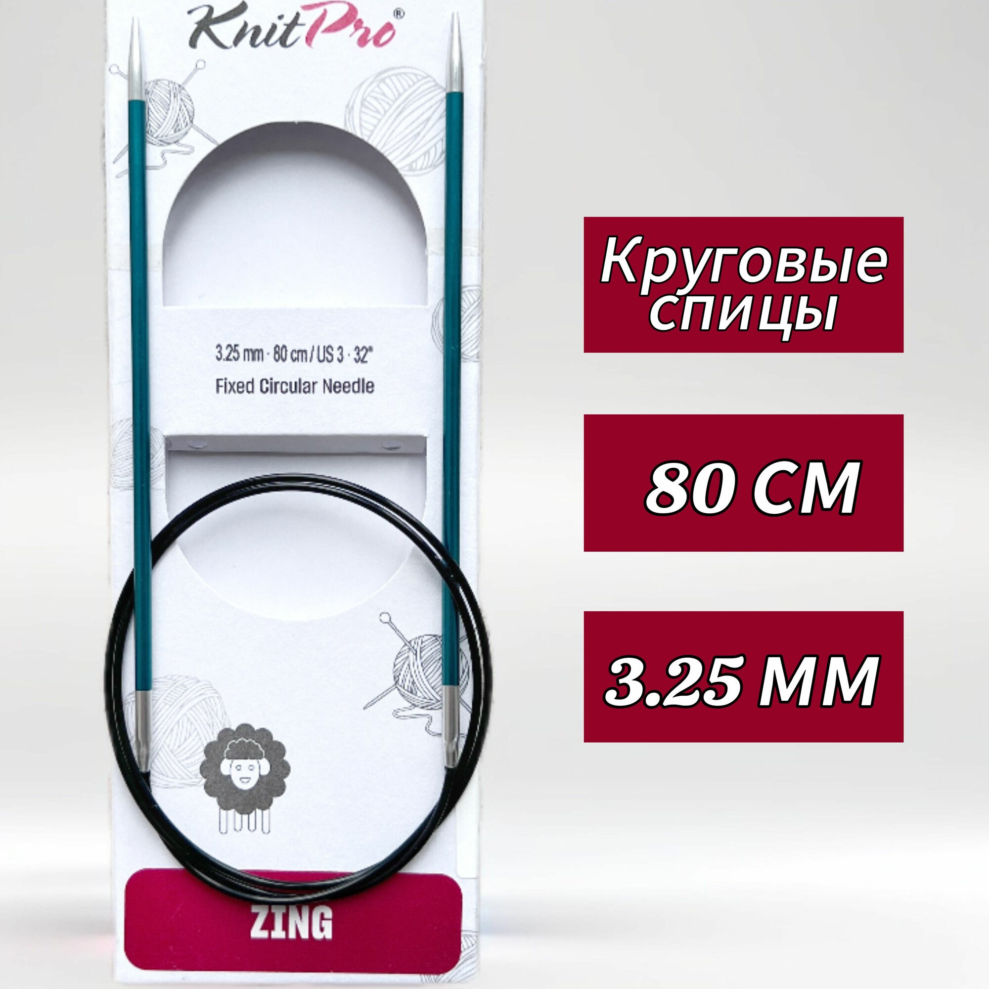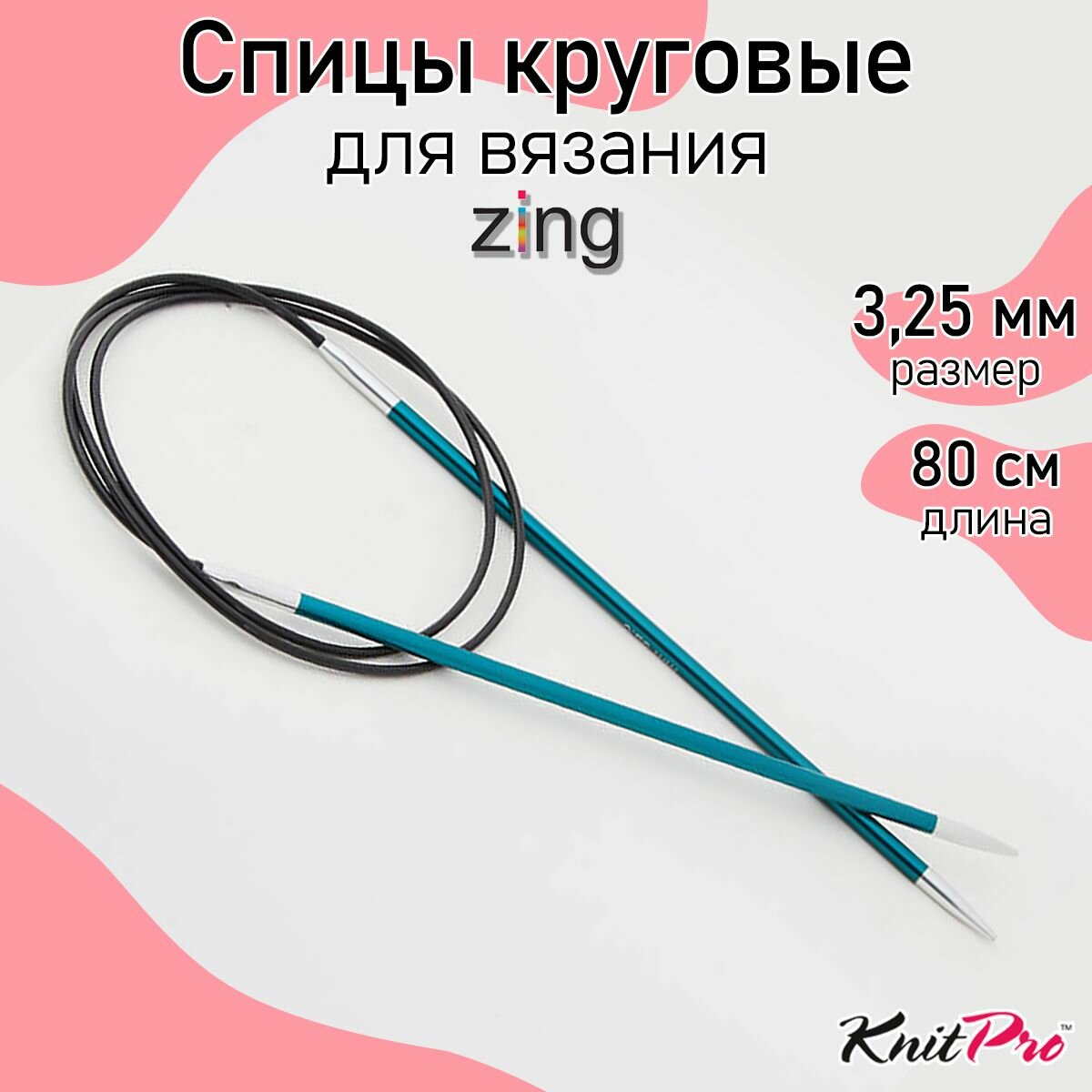| Комплектация | Спицы круговые Zing 3 мм/80 см, алюминий, нефтритовый, KnitPro |
