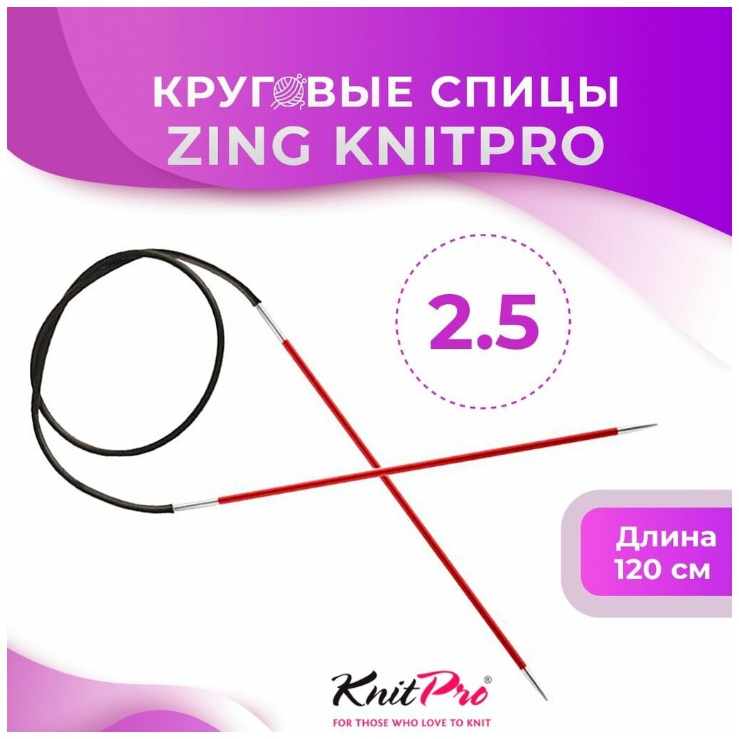 Спицы круговые Knit Pro Zing, 2,5 мм, 120 см, алюминий, гранатовый (KNPR.47183)
