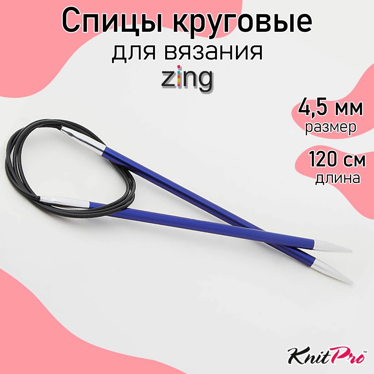 Спицы круговые Zing 4,5мм/120см, алюминий, KnitPro, 47190