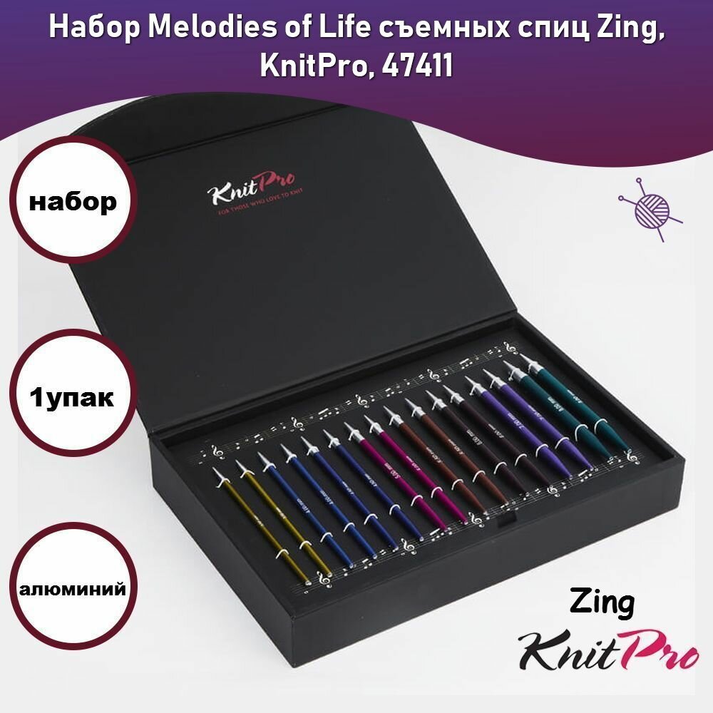 47411 Набор съемных спиц Melodies of Life Zing KnitPro длина 11,5см интересное: