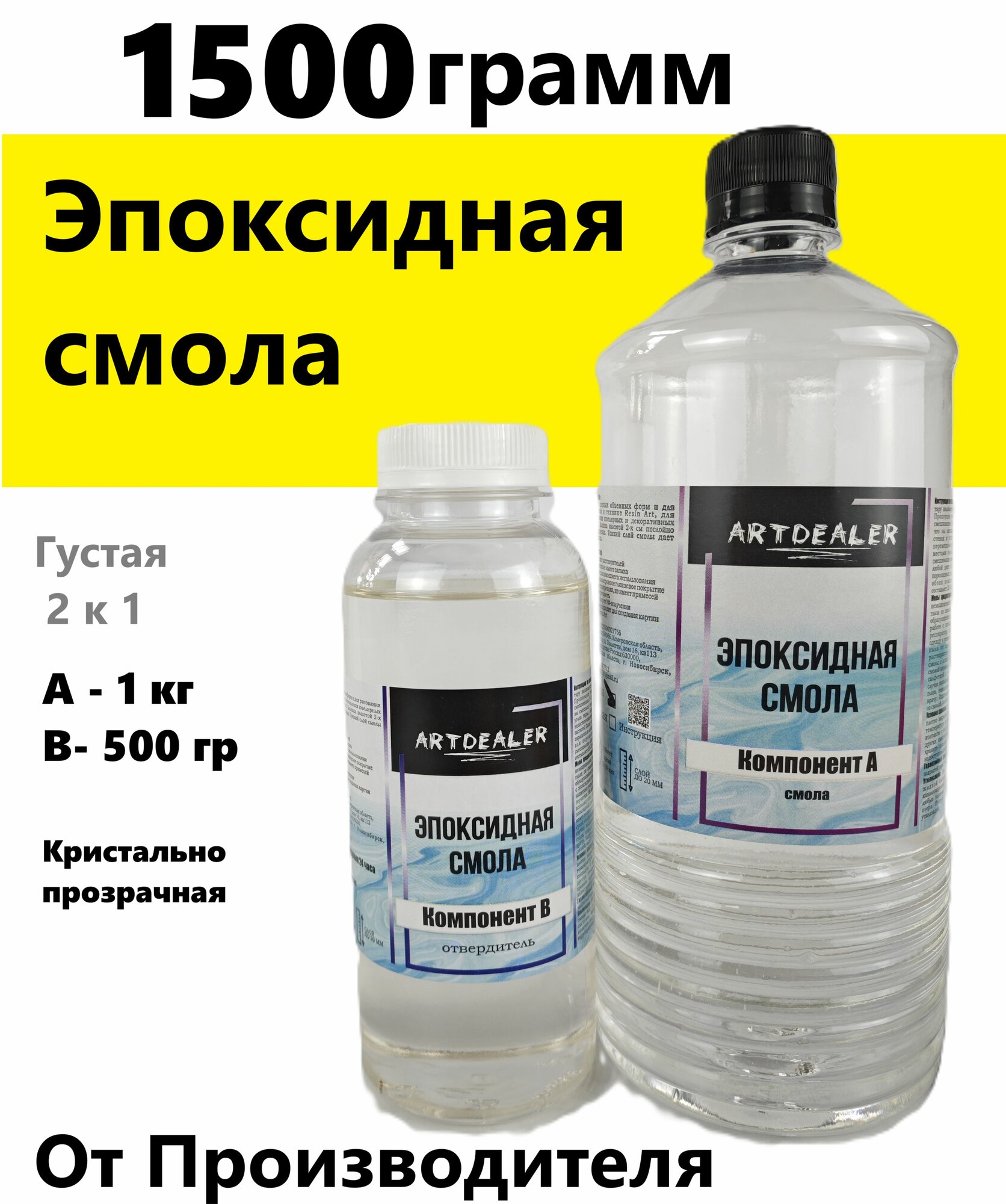 Купить Прозрачная 1,5кг эпоксидная смола с отвердителем для заливки и рисования без запаха / Густая эпоксидная смола для творчества украшений.