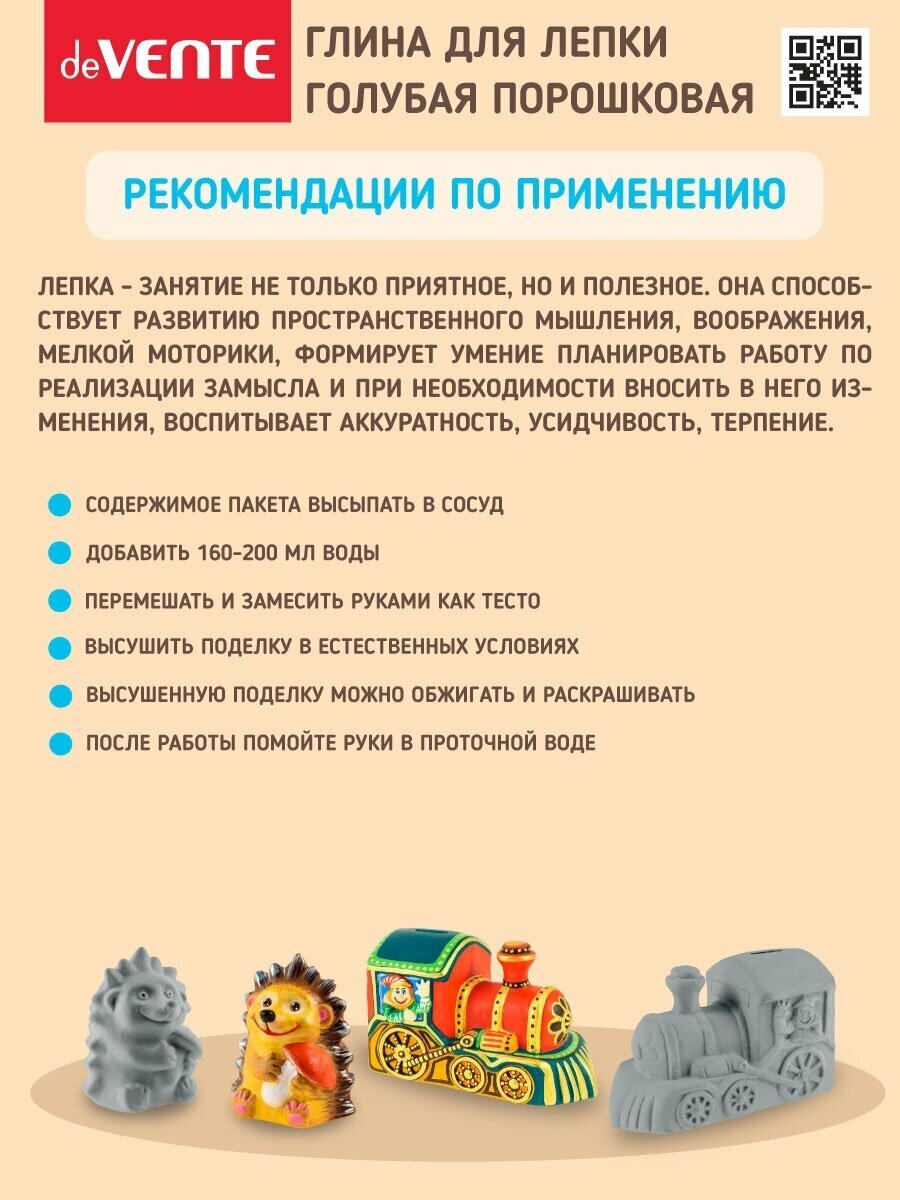 Глина для лепки deVENTE Голубая, порошковая, 1 кг интересное: