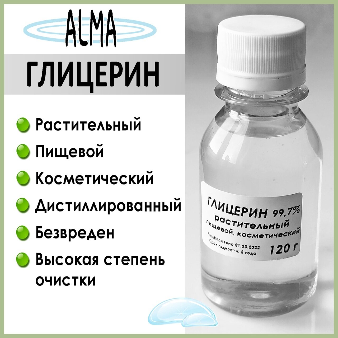 Купить Глицерин ALMA прозрачный, жидкий, пищевой, аптечный, косметический, дистиллированый 99,5%, 120 г