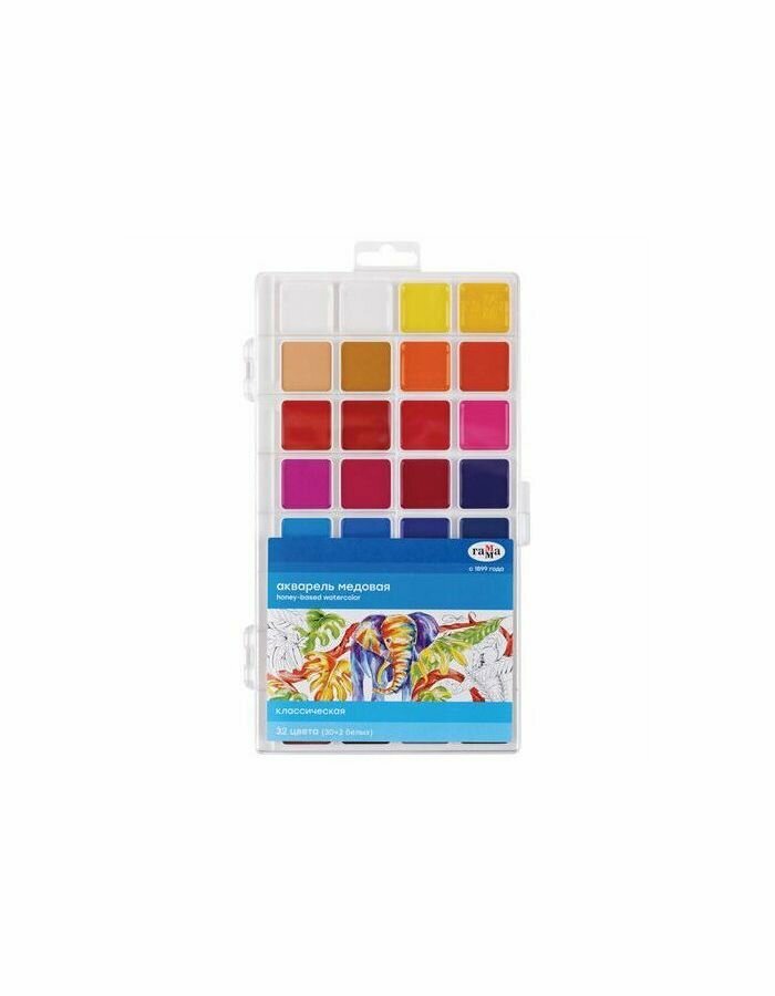 Акварель Гамма "Классическая", медовая, 32 цвета, без кисти, пластик. упак, европодвес