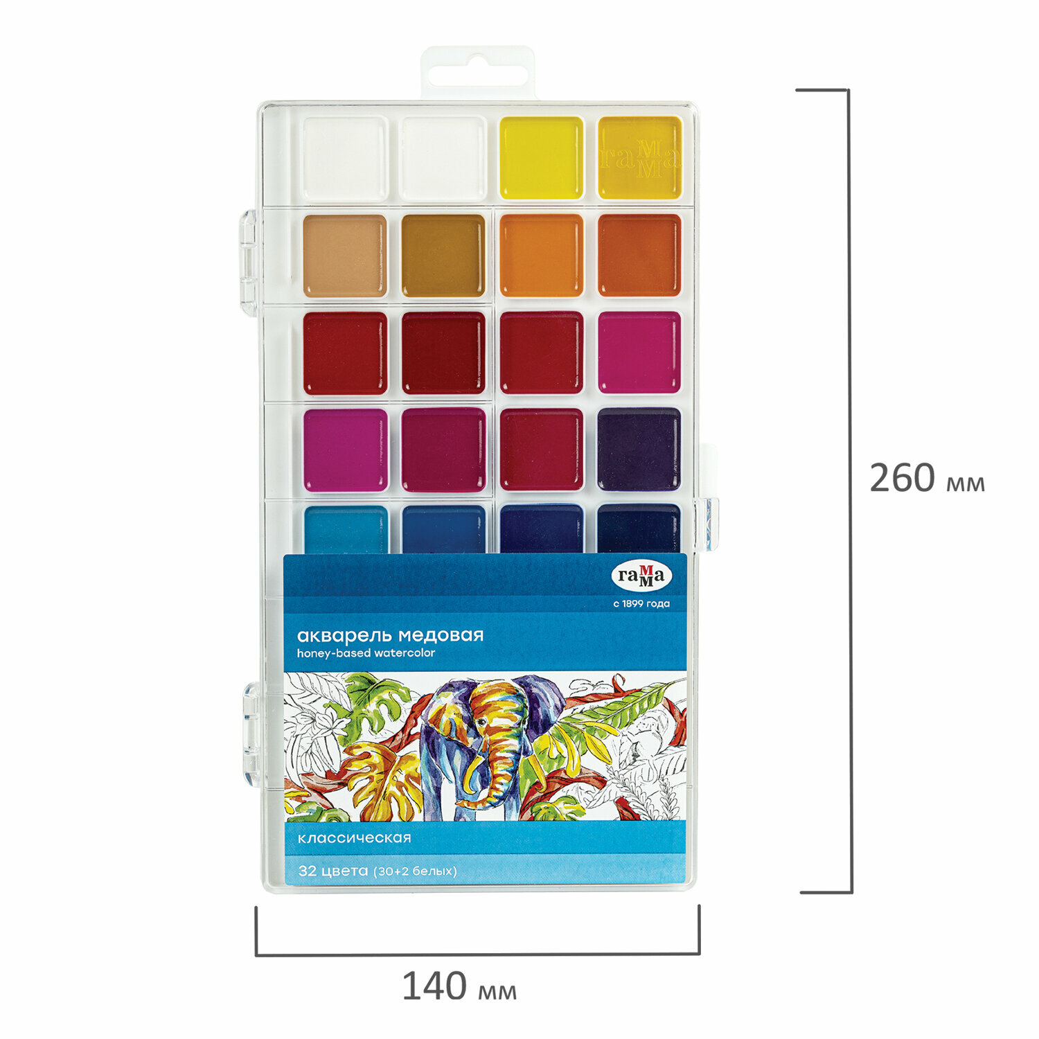 Краски акварельные гамма "Классическая", 32 цвета, медовая, пласт. кор.,европодвес, 1009199