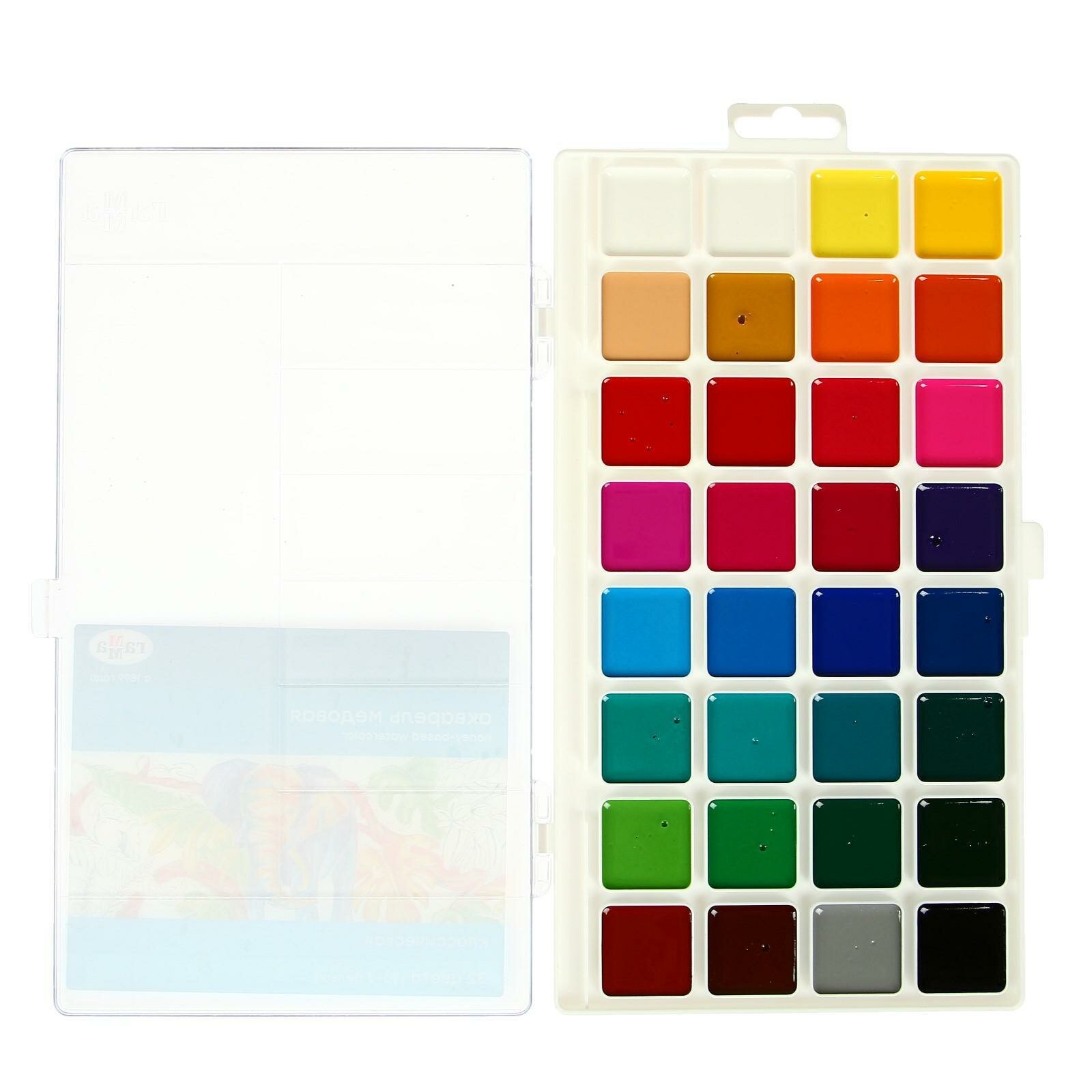 Акварель 32 цвета "Классическая", медовая, без кисти, пластик