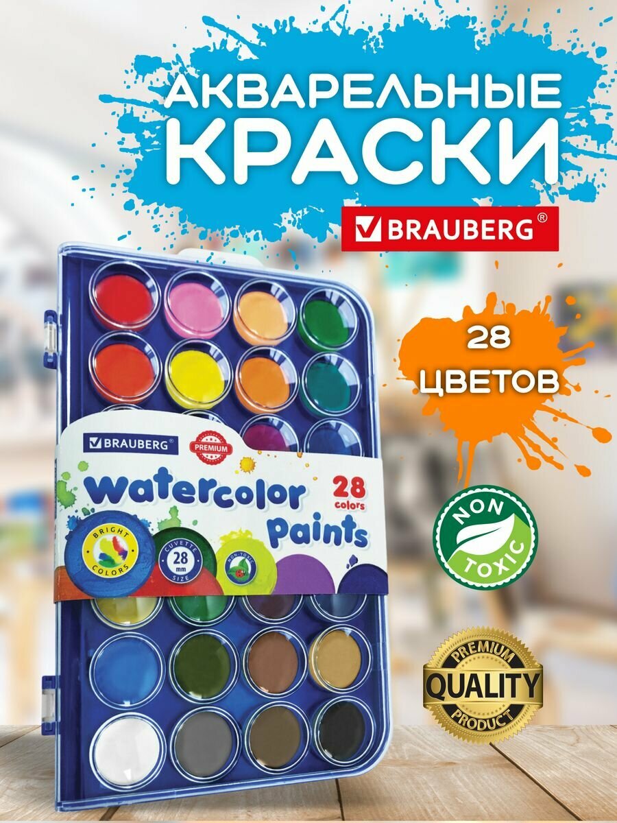 Купить Набор акварельных красок Brauberg PREMIUM, кюветы диаметром 28 мм, 28 цветов