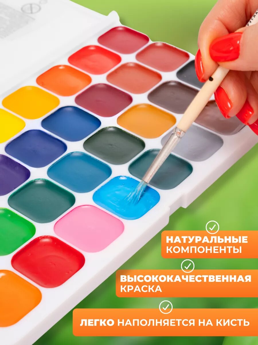 Краски акварельные для рисования 'Классика', набор 32 цвета, без кисти, Луч