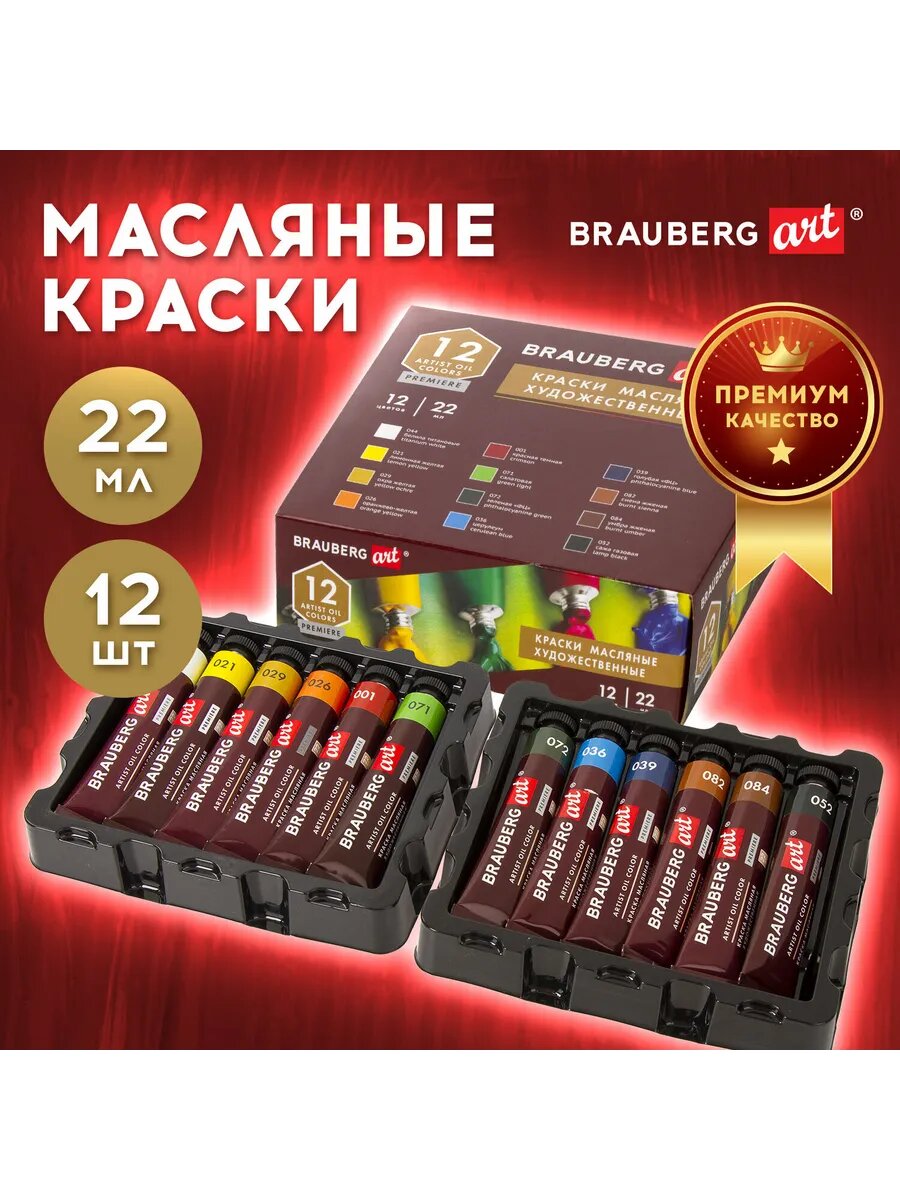 Краски масляные художественные Brauberg Art Premiere, 12 цветов по 22 мл, в тубах (191458)