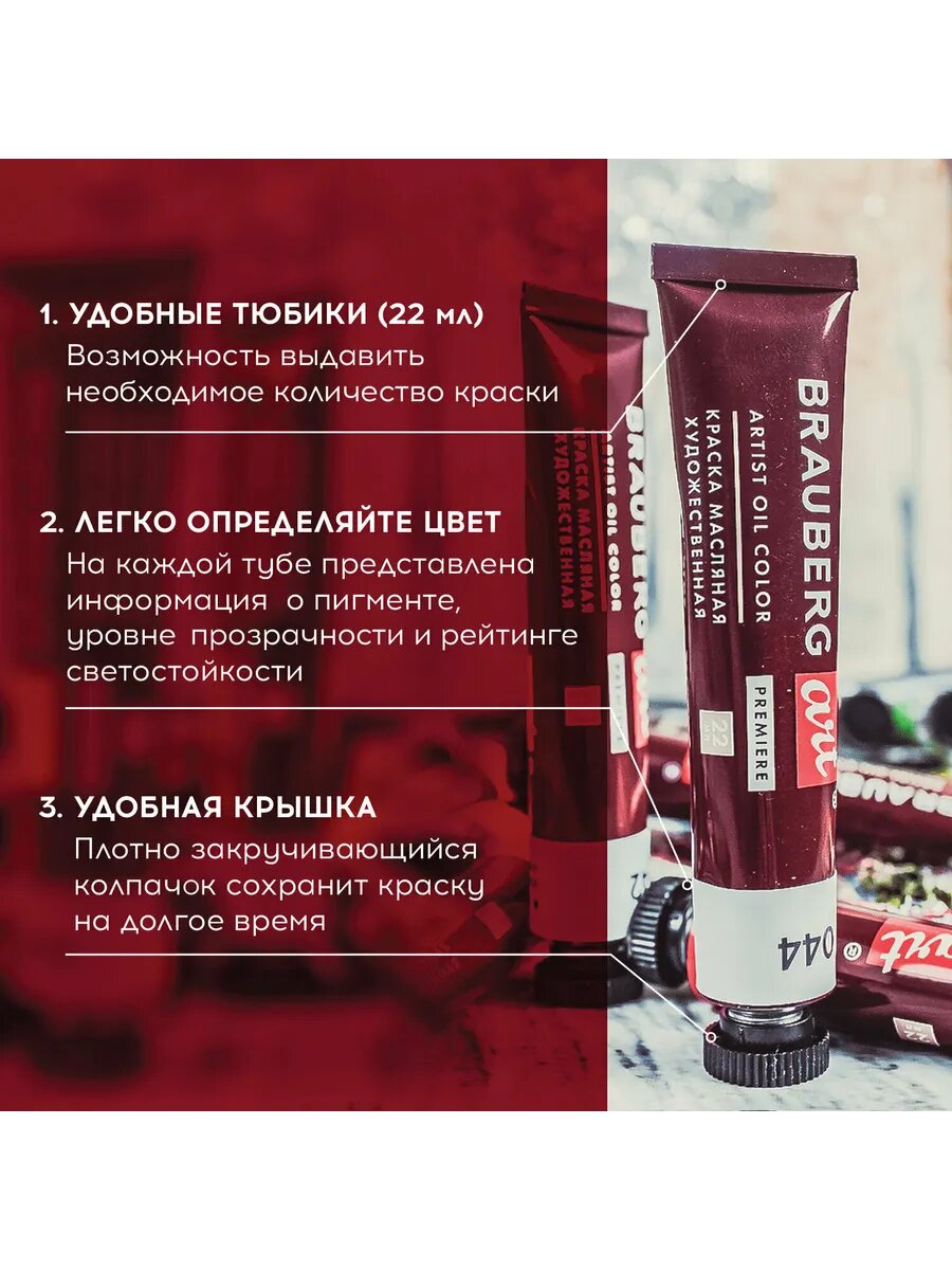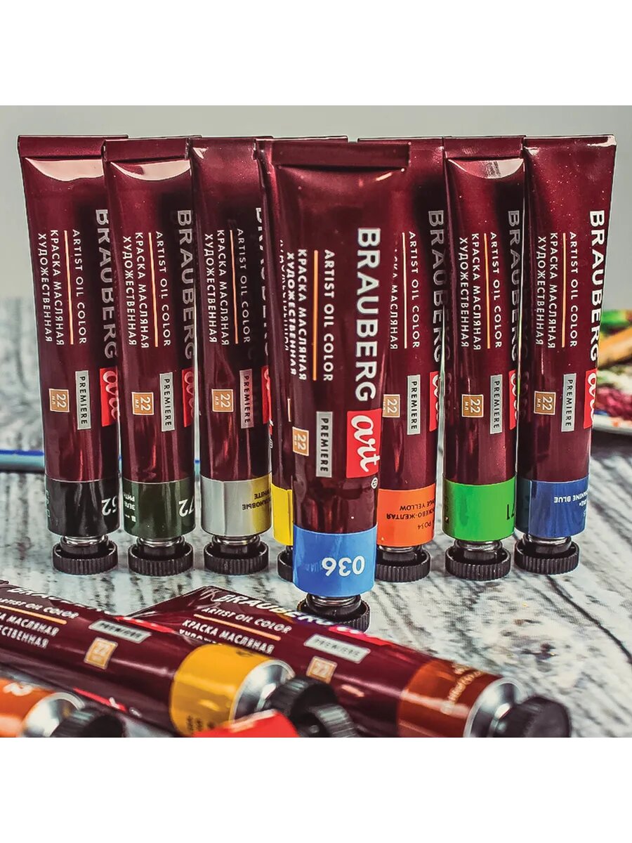 Краски масляные художественные BRAUBERG ART PREMIERE, 24 цв. по 22 мл, в тубах, 191460