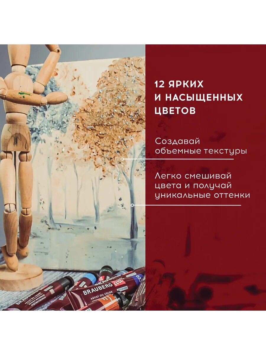 Краски масляные для рисования художественные водоразбавимые 12 цветов по 37 мл в тубах, Brauberg Art 192293