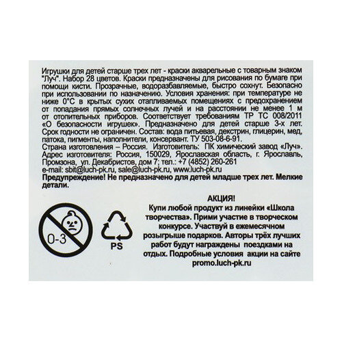 Акварель Луч "Школа творчества" 28 цветов без кисти