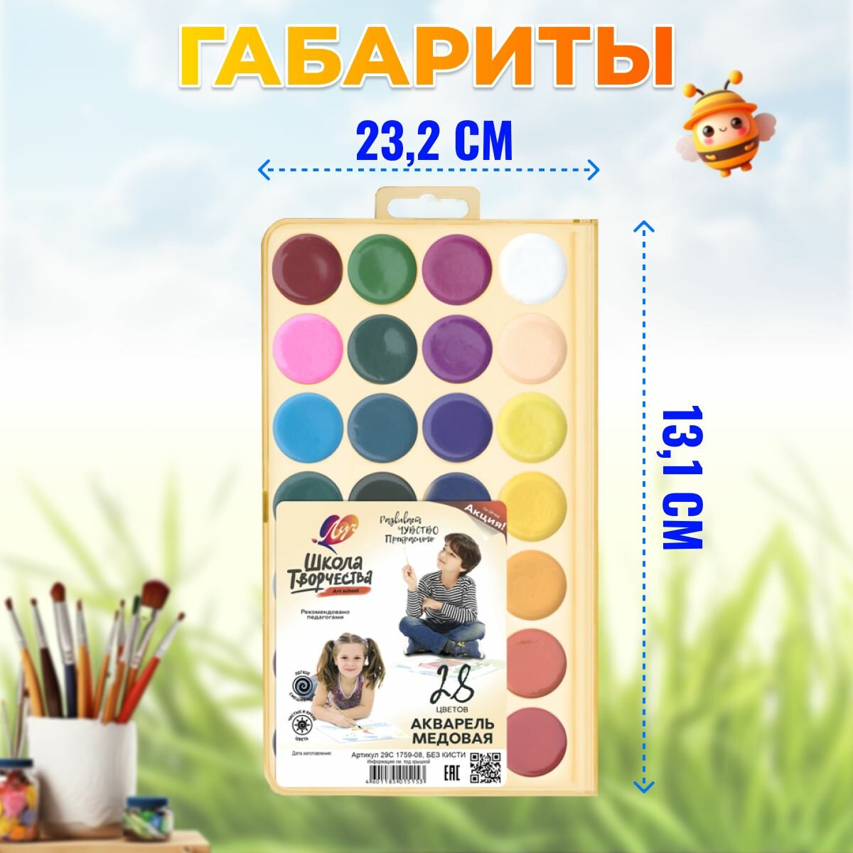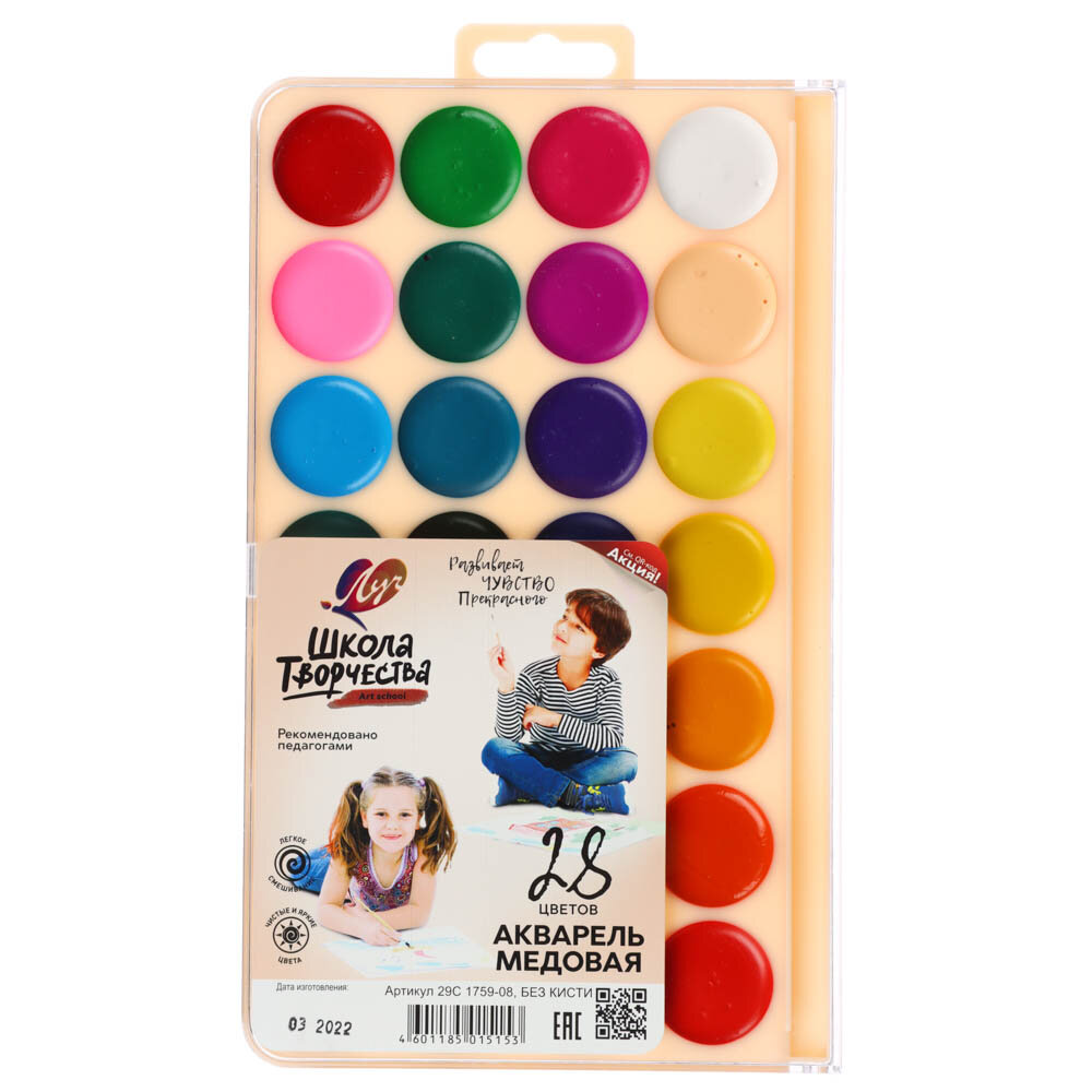 Купить Краски акварельные Луч "Школа творчества", 28 цветов, медовые, без кисти,пластиковая коробка, 29С 1759-08