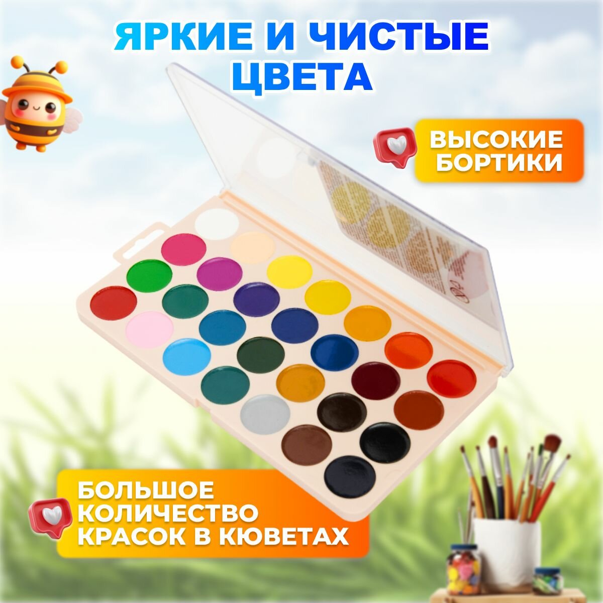 Краски акварельные для рисования 'Школа творчества', набор 28 цветов, без кисти, Луч