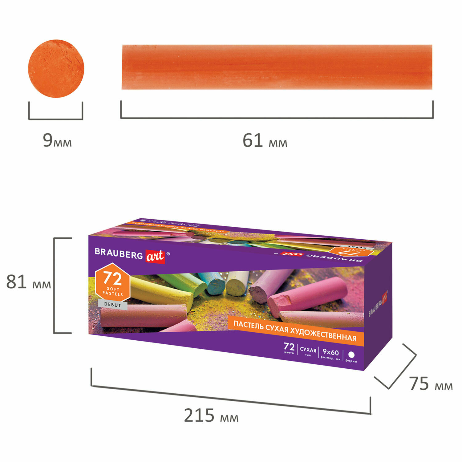 Купить Пастель сухая художественная для рисования Brauberg Art "Debut", набор 72 цвета, круглое сечение