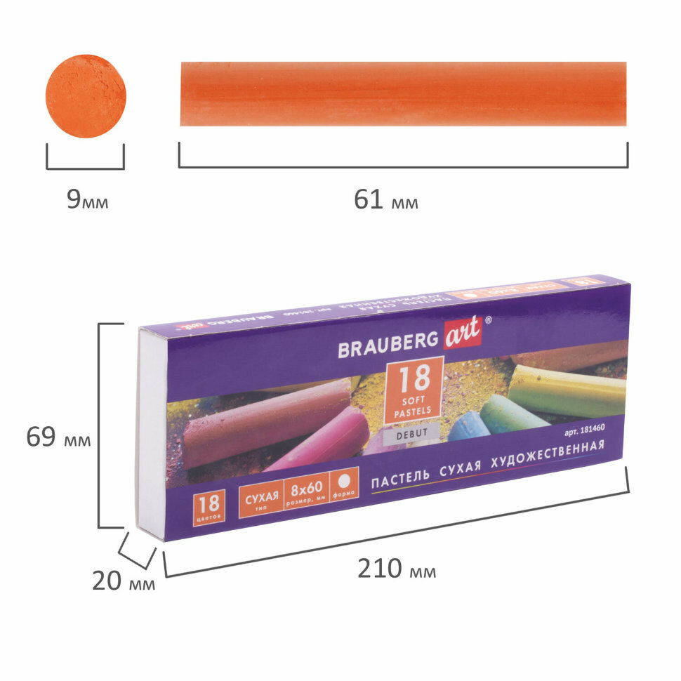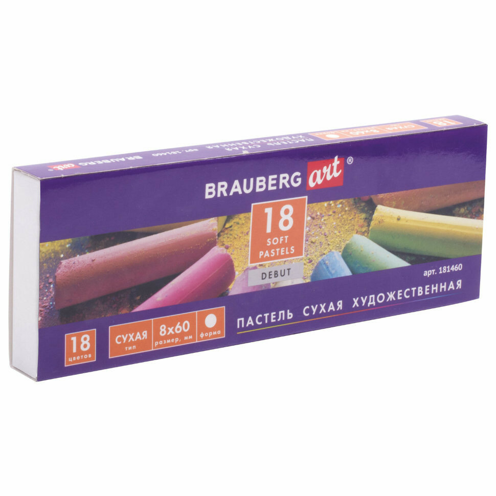 Пастель сухая художественная BRAUBERG ART DEBUT, 18 цветов, круглое сечение, 181460