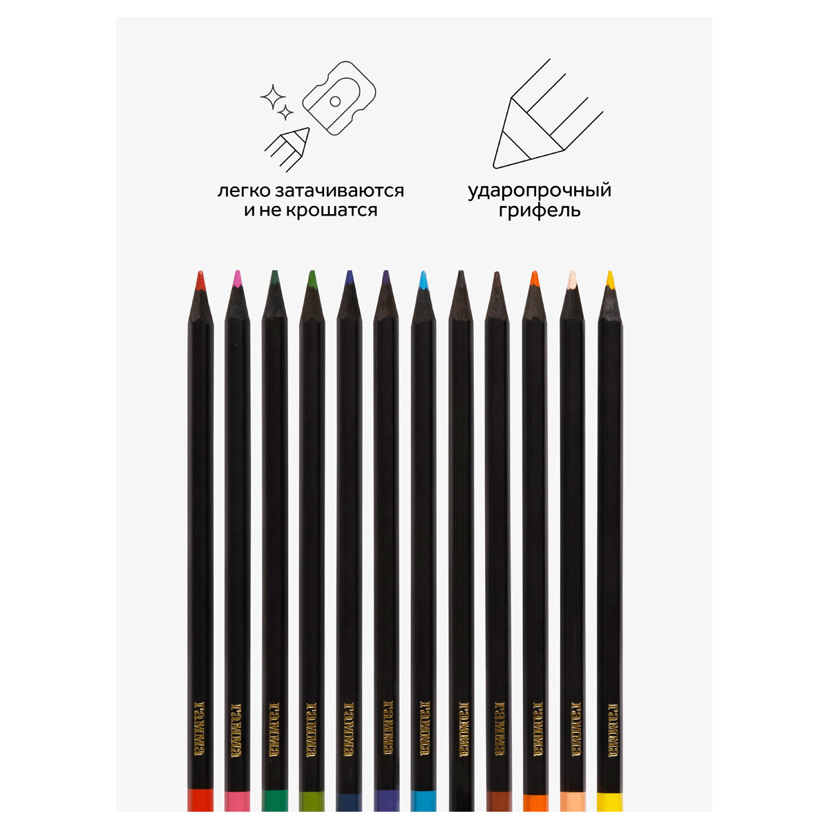 Купить Карандаши цветные 12цв. Гамма.Мультики черное дерево, шестигранные, картонная коробка