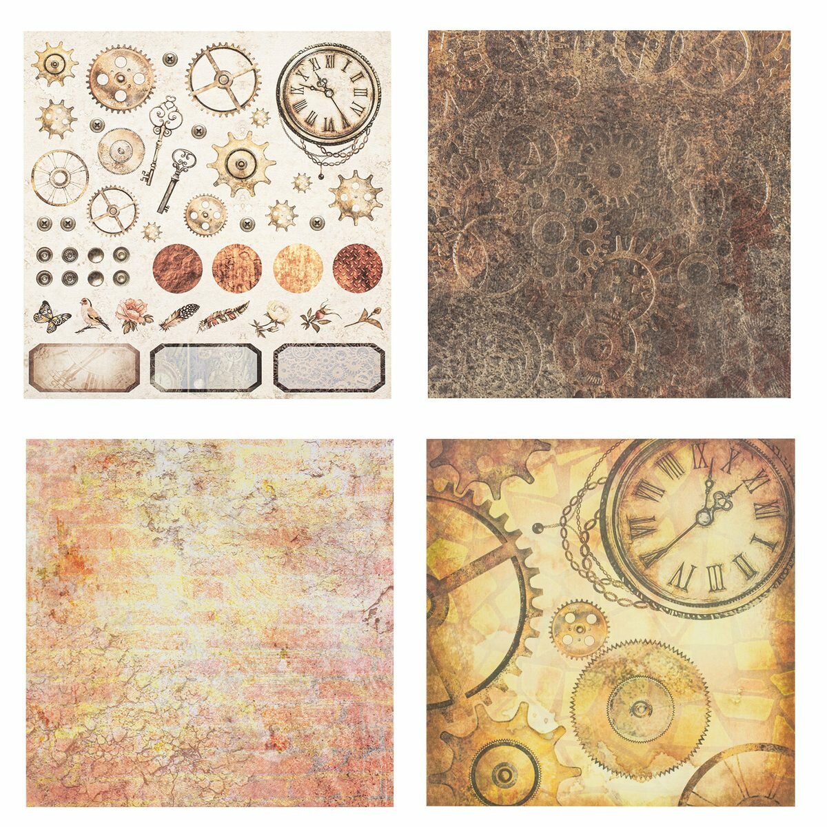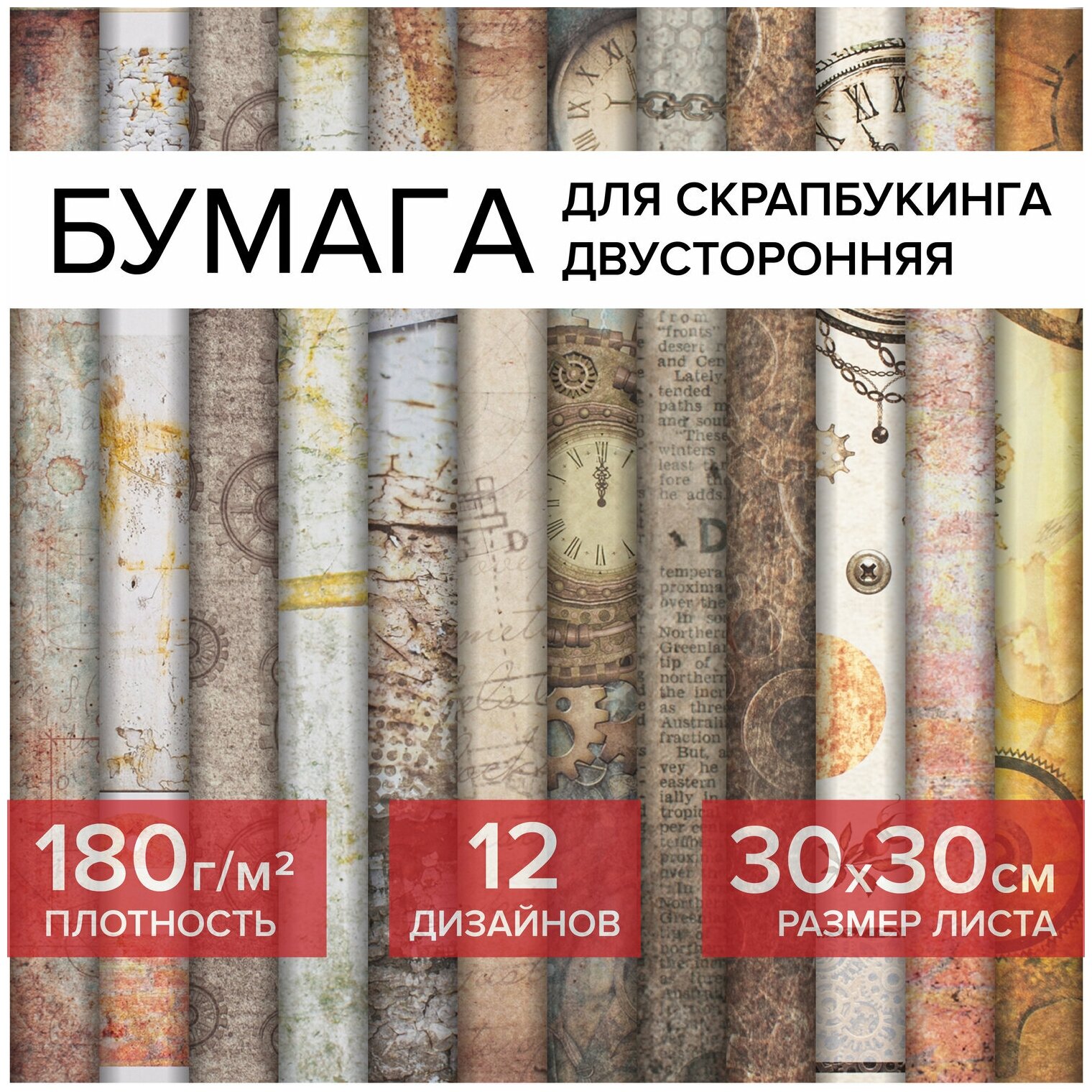 Бумага для скрапбукинга, для открыток, творчества, декора 30х30 см Стимпанк, двусторонняя, 12 листов, 12 дизайнов, 180 г/м2, Остров Сокровищ, 662769