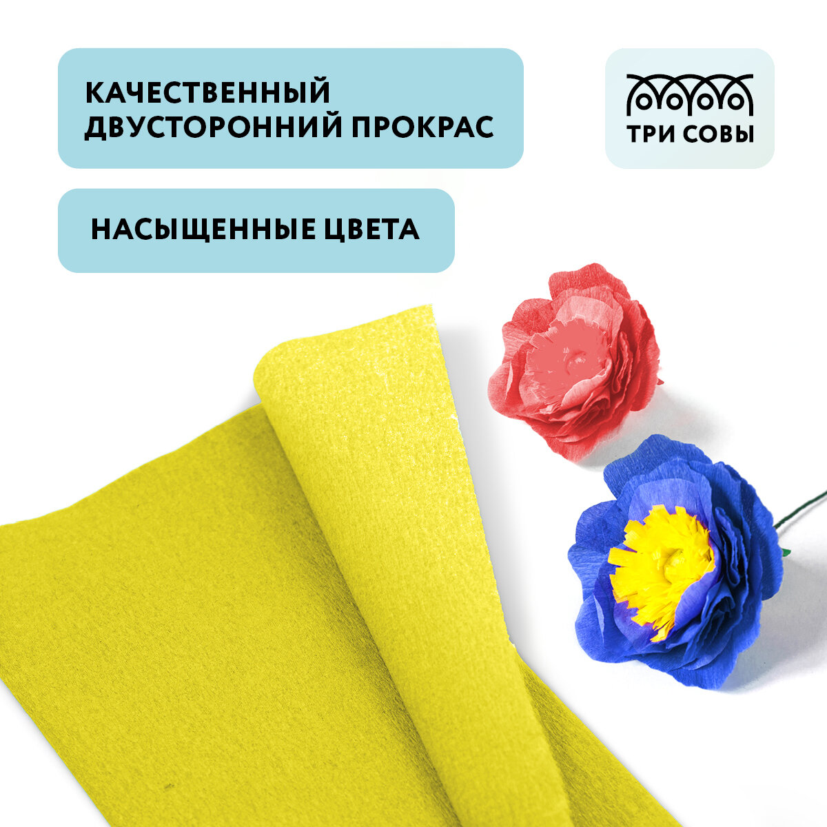 Цветная бумага крепированная в рулоне ТРИ совы, 50х250 см, 5 л., 5 цв.