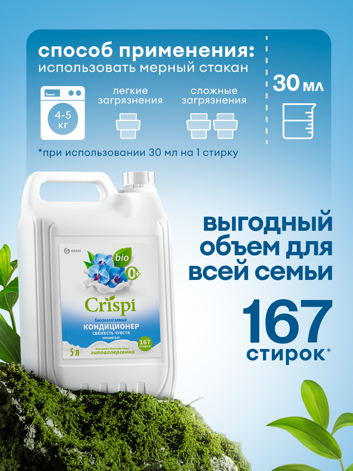 Кондиционер-ополаскиватель для белья Grass CRISPI Свежесть чувств, концентрат, экологичный, 2.5 л
