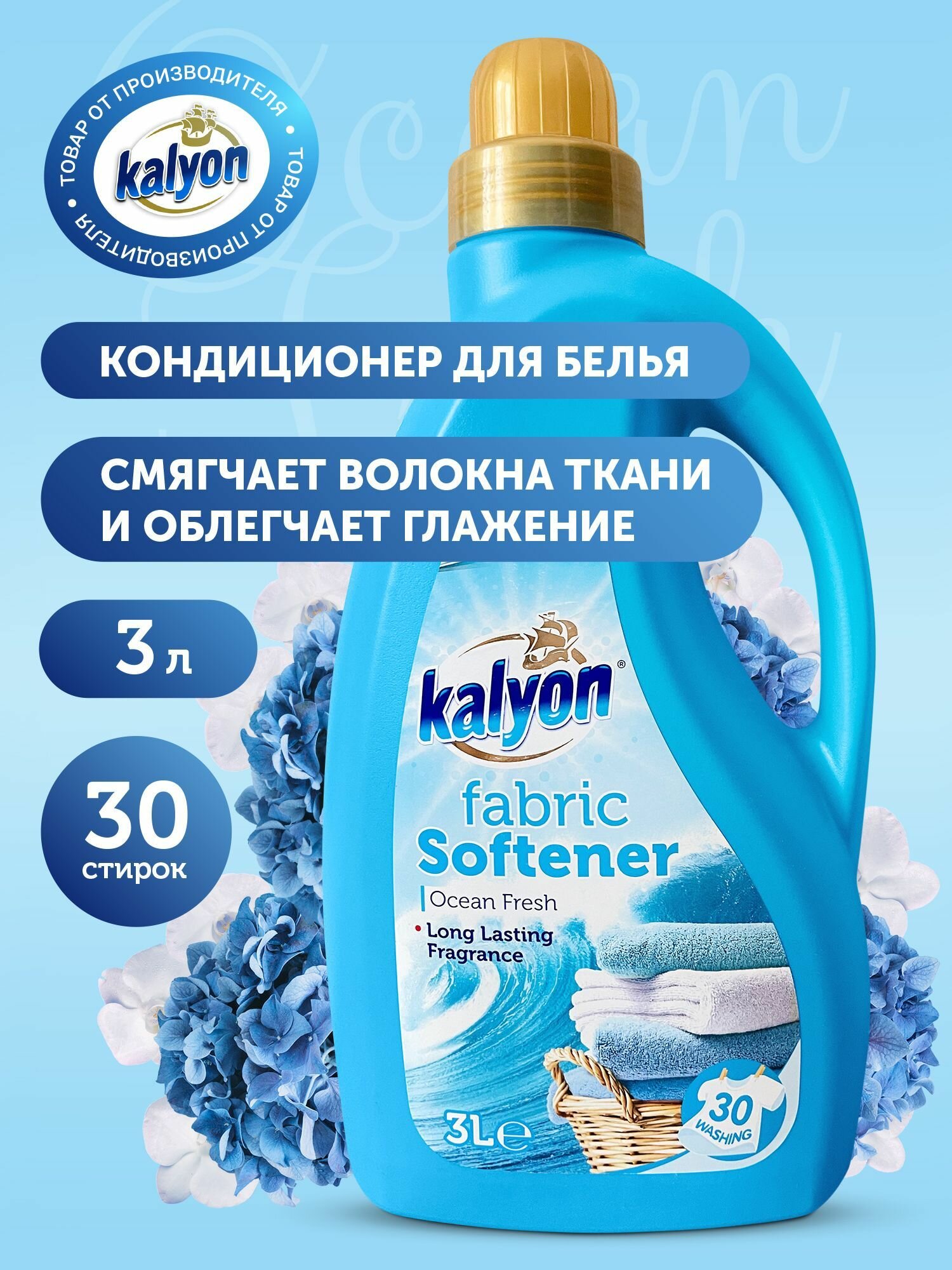 Купить Кондиционер ополаскиватель для белья KALYON FABRIC SOFTENER Свежесть Океана 3 л, без фосфатов, с антистатическим эффектом