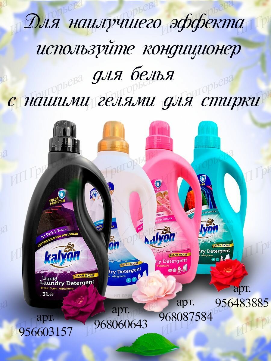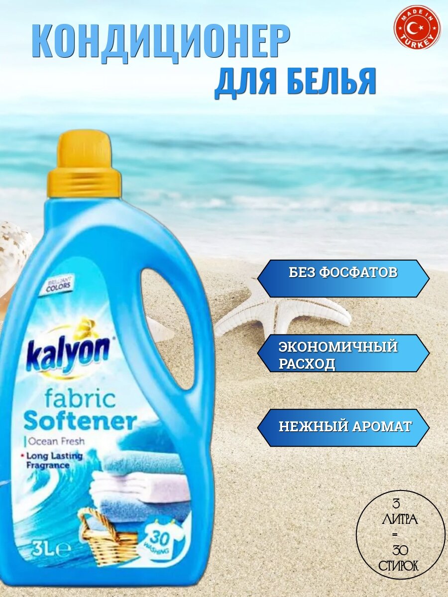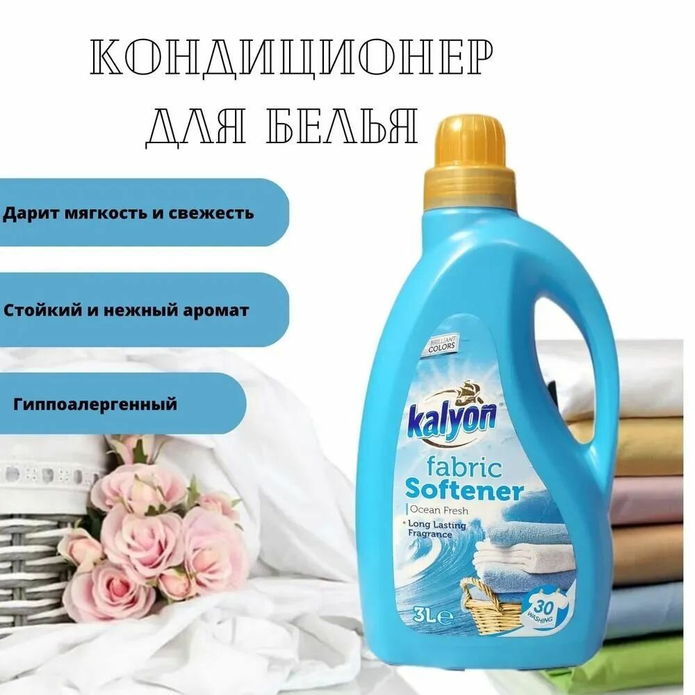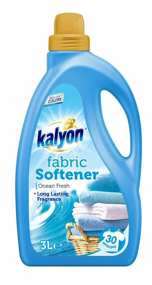 СохранитьКондиционер ополаскиватель для белья KALYON FABRIC SOFTENER Свежесть Океана 3 л, без фосфатов, с антистатическим эффектом интересное: