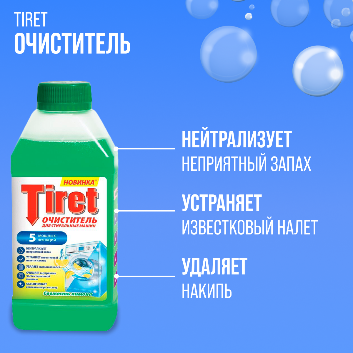 | Подробная комплектация | Tiret Очиститель для стиральных машин Свежесть лимона, 250 мл |