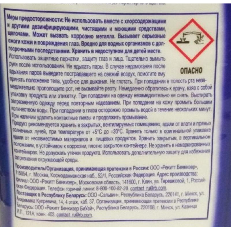 | Содержит | ПАВ / гипохлорит натрия / кислоты / хлор |