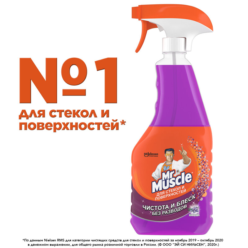 Стеклоочиститель Мr. MUSCLE Средство для стекол и поверхностей Лаванда, 500 мл триггер 5000204159790