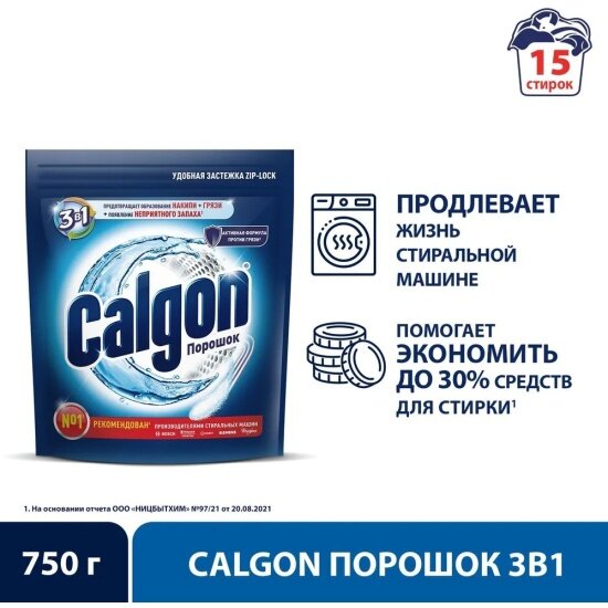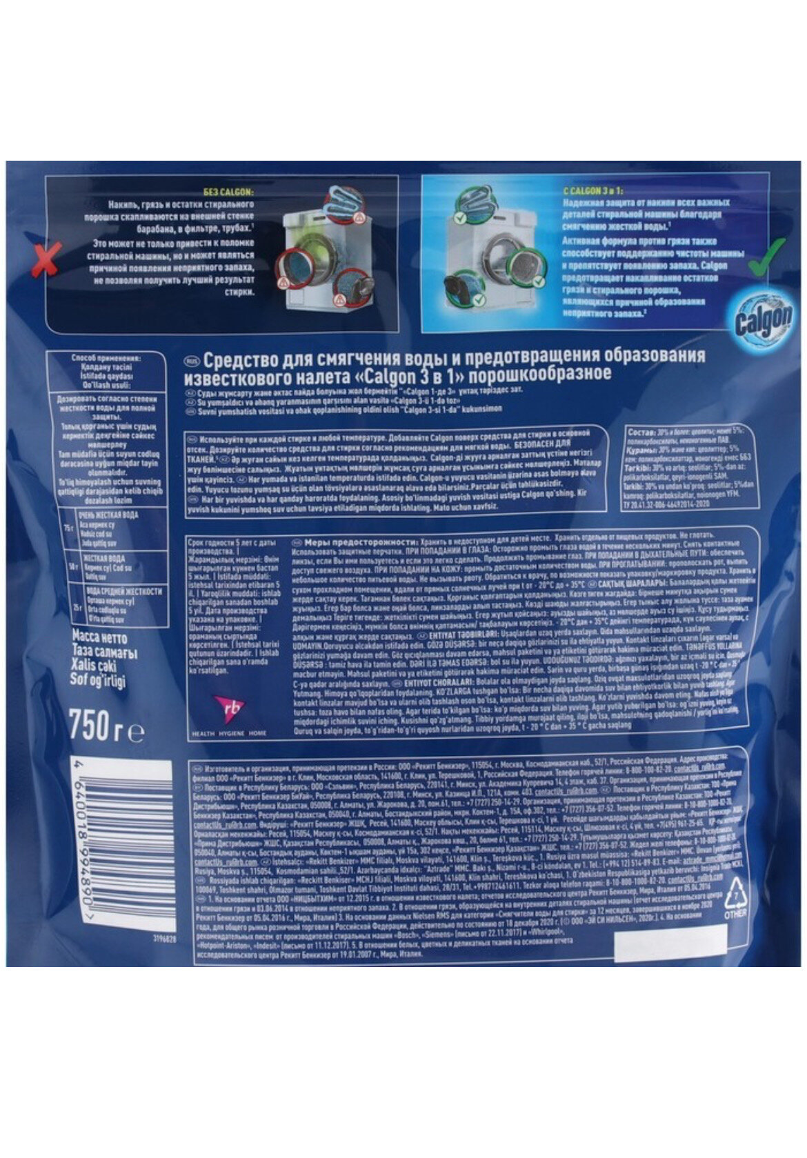 Средство от накипи Calgon для стиральной машины 3в1, антинакипин для смягчения воды, порошок очиститель от неприятного запаха, 750 гр