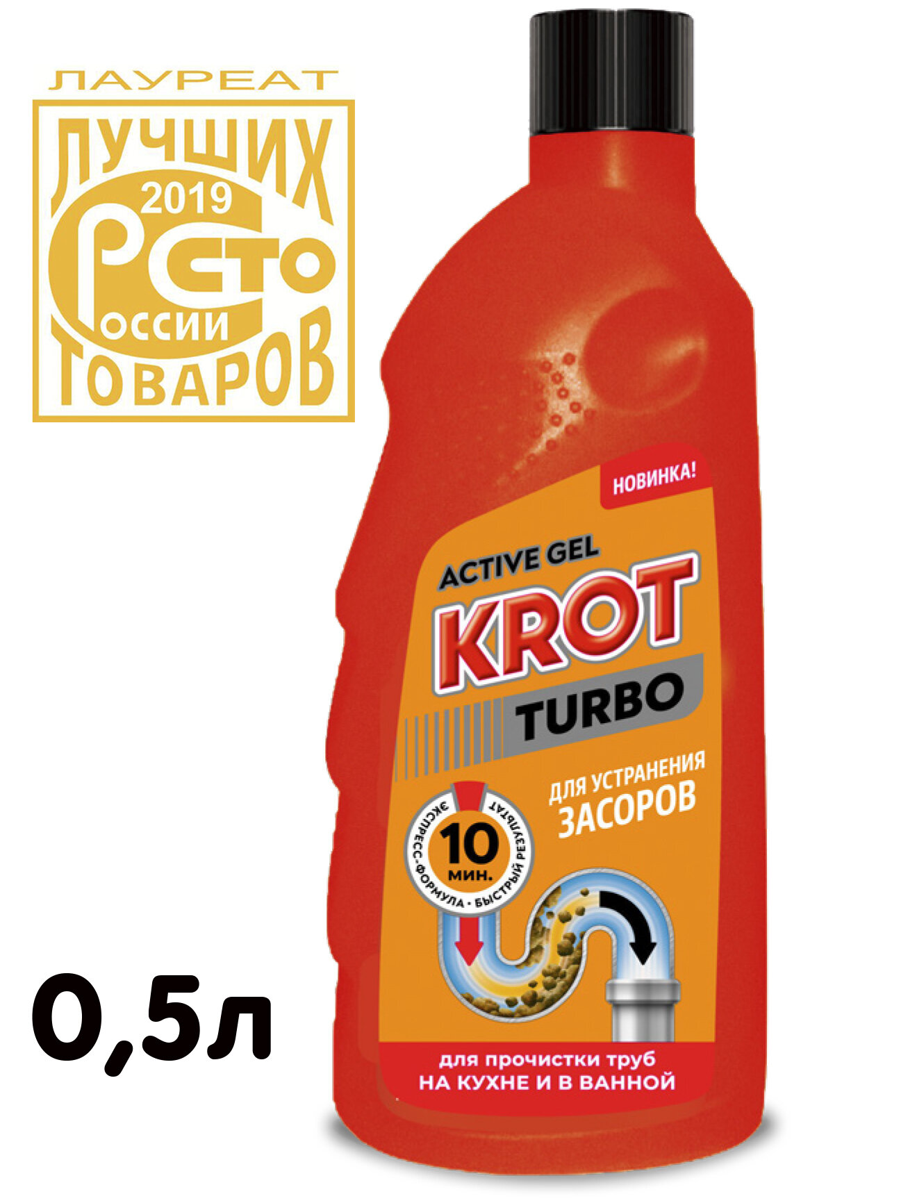 КРОТ Турбо гель 0,5 л, средство для прочистки и очистки труб, от засоров, крот для труб, эффективная прочистка