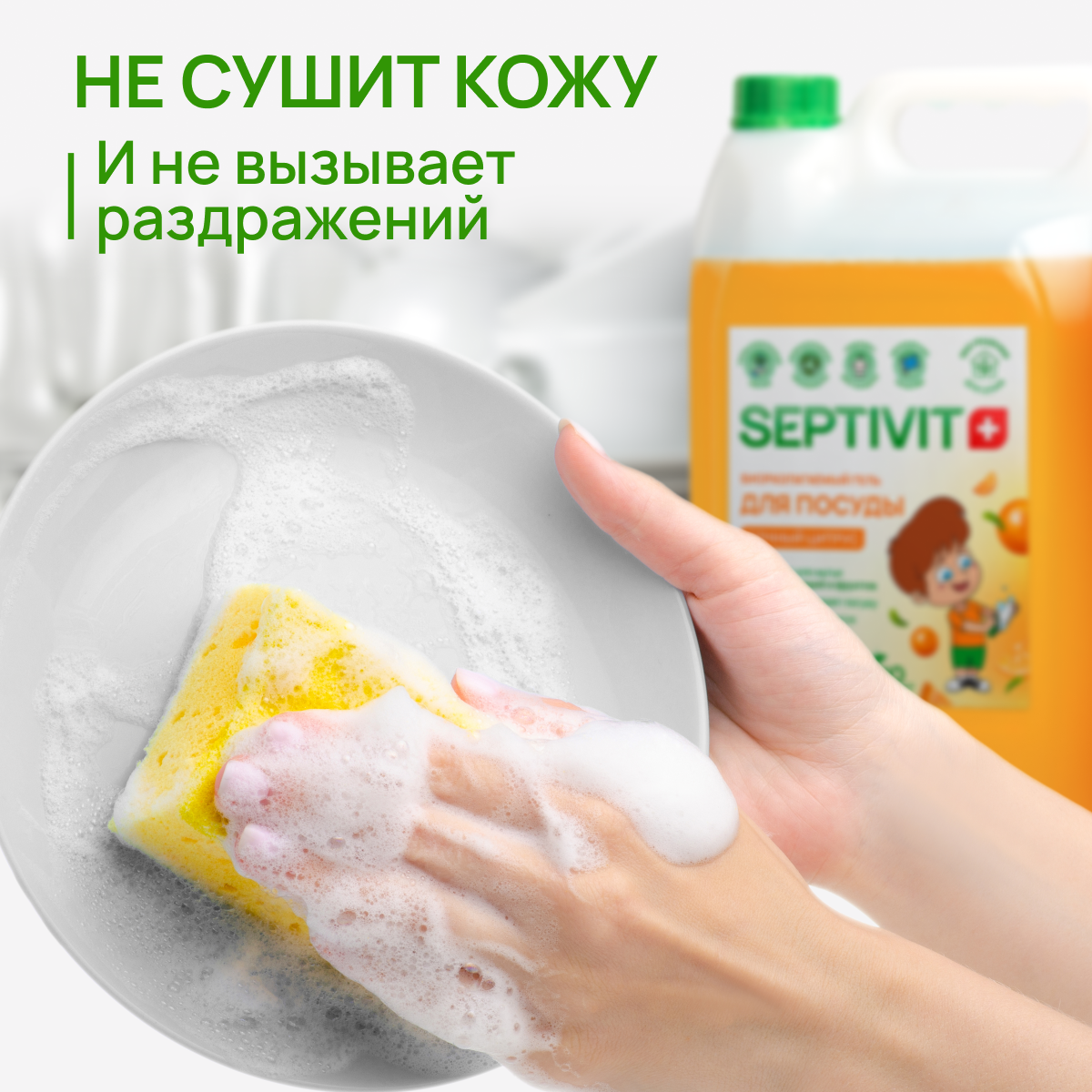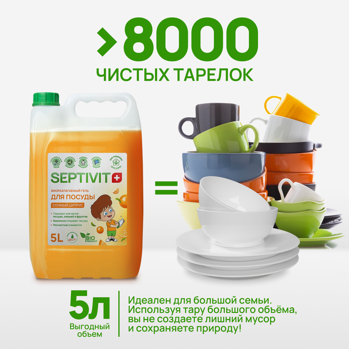 СохранитьСредство для мытья посуды, овощей и фруктов SEPTIVIT / Гель для мытья посуды Септивит, Сочный цитрус 5л интересное: