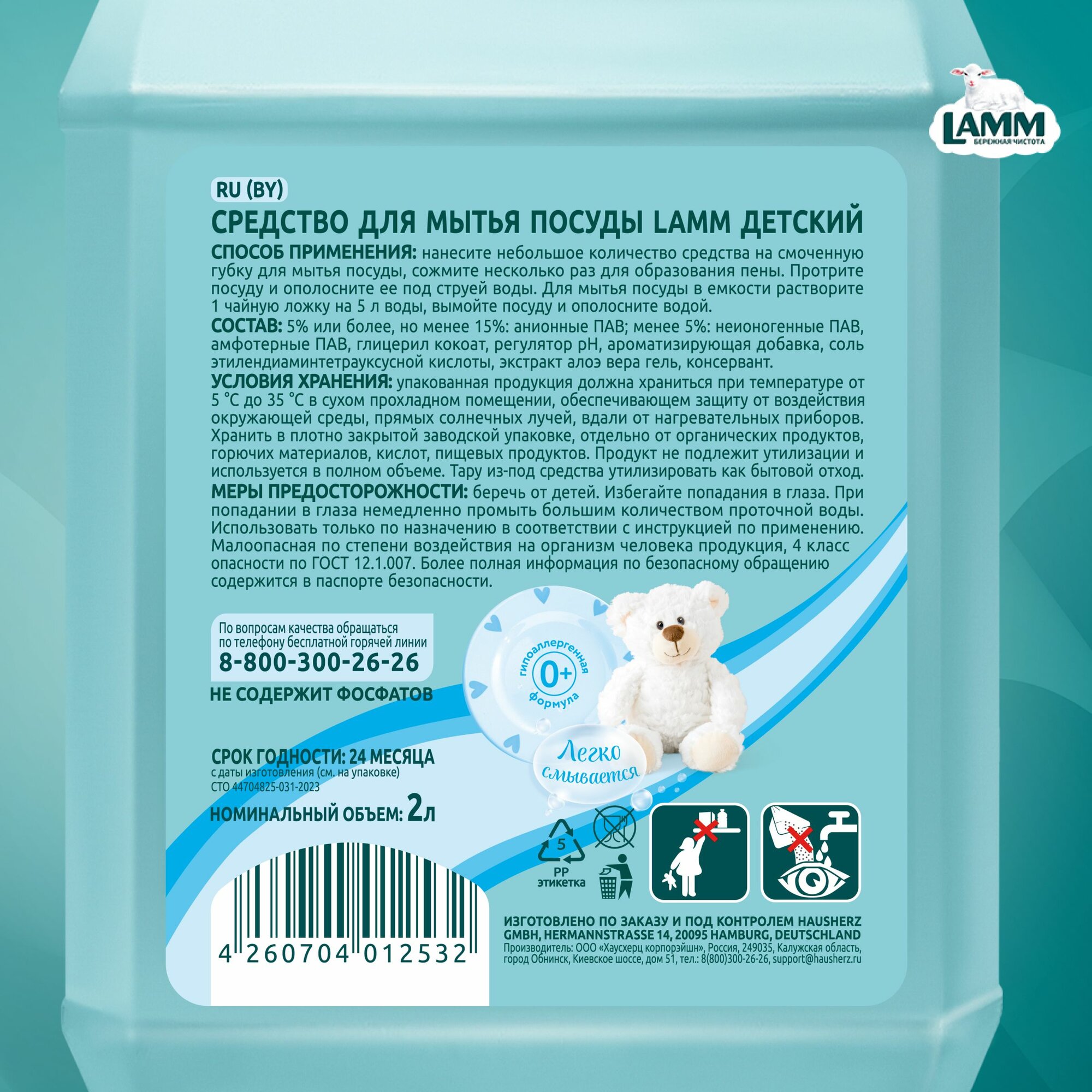 LAMM Детский средство для мытья детской посуды, гипоаллергенное 2 л