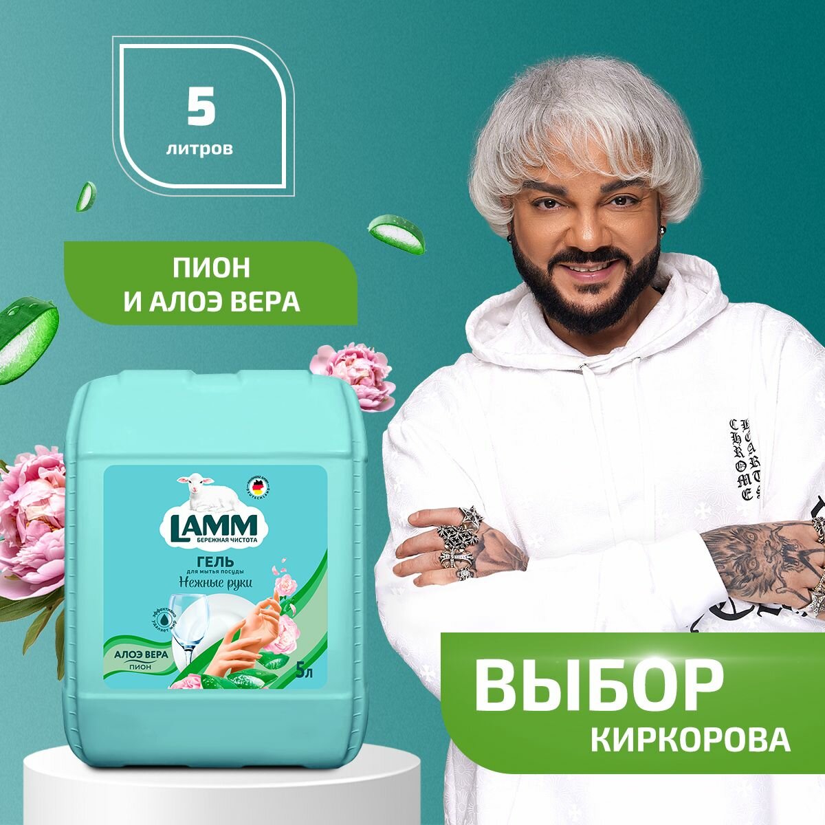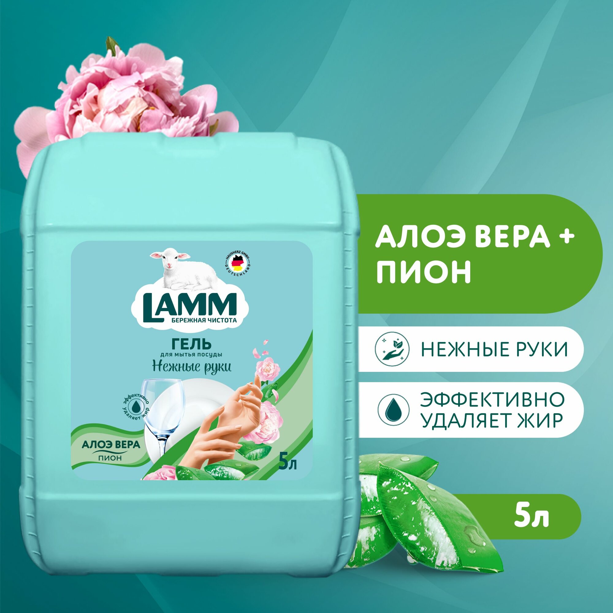 Купить LAMM Нежные руки средство для мытья посуды Алоэ вера + Пион 5 л, без фосфатов