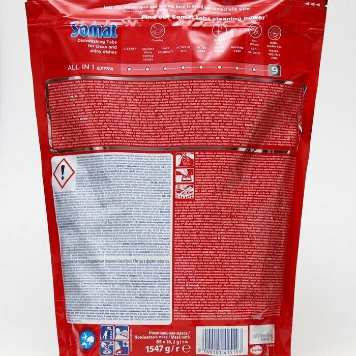 Таблетки для посудомоечной машины Сомат All in 1 Extra, 85 шт., 1.55 кг, дой-пак