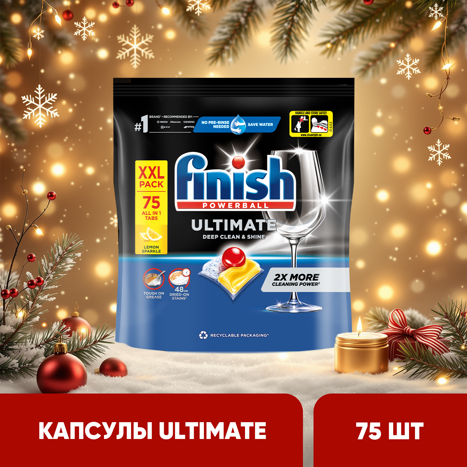 Капсулы для мытья посуды Finish Ultimate для посудомоечной машины, таблетки для посудомоечных машин, 75 шт.