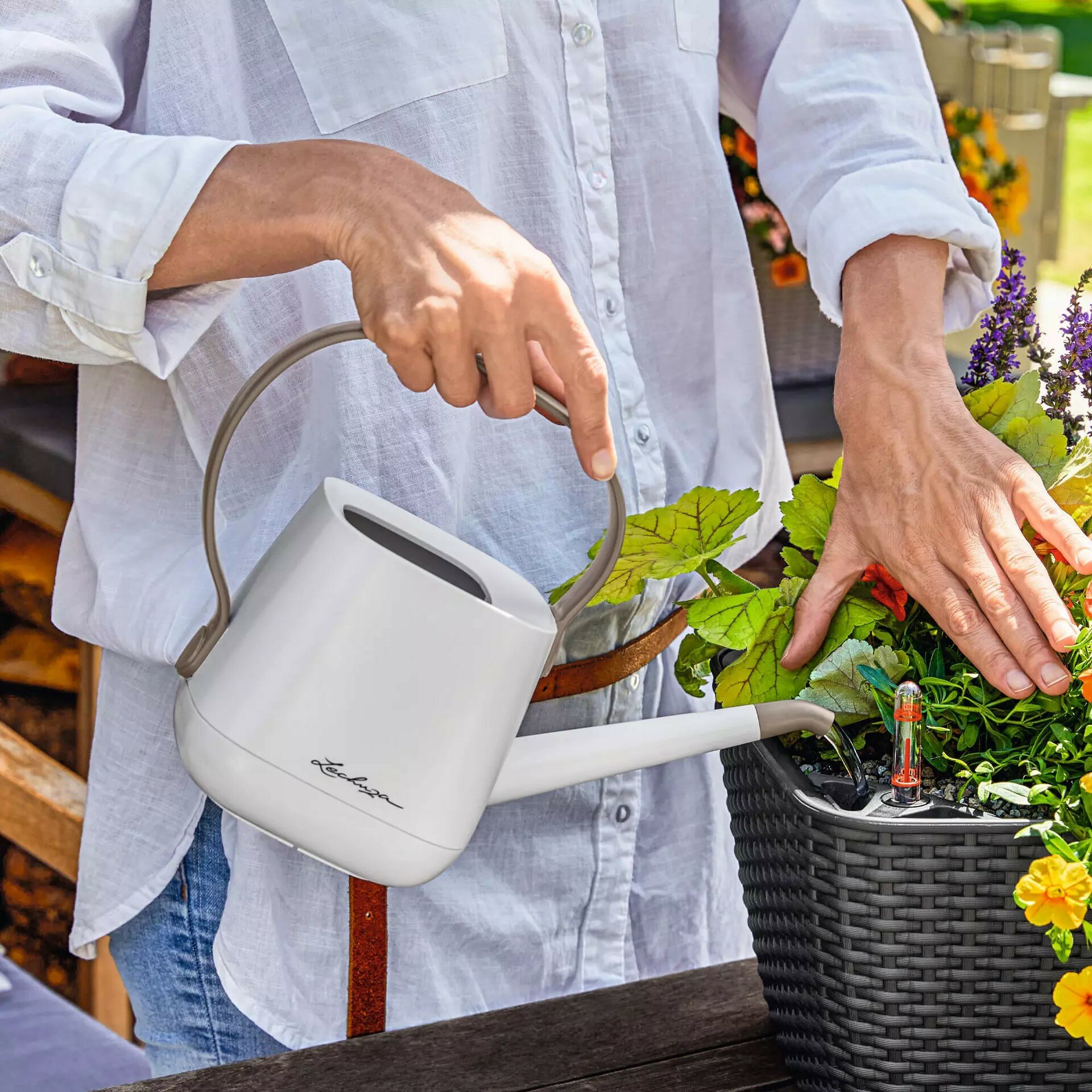 Лейка для комнатных растений Lechuza YULA белая-серо-коричневая 1,7 л