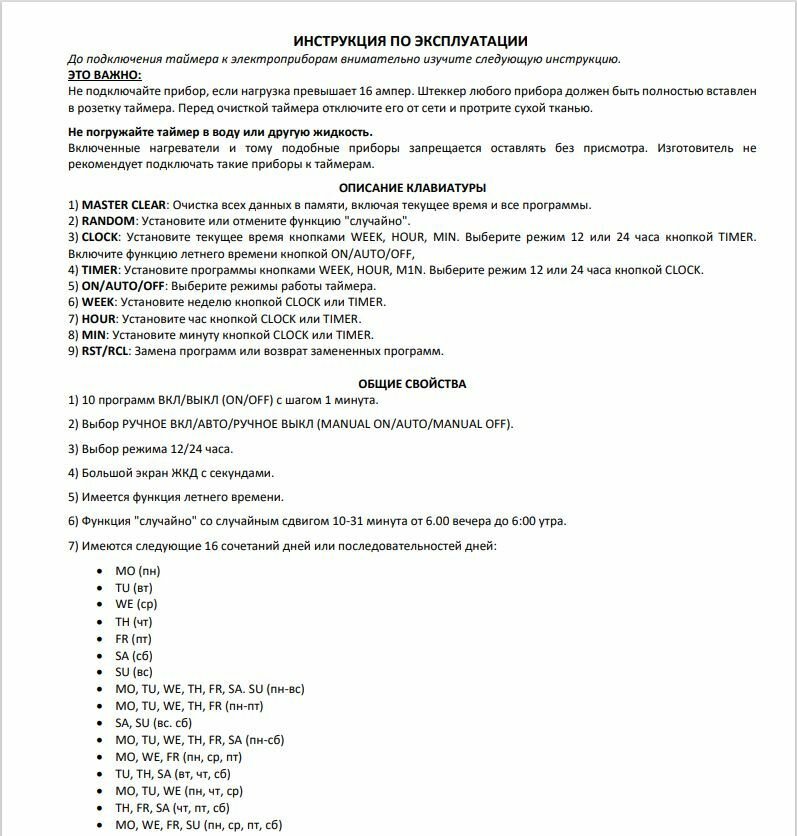 | Максимальная продолжительность полива | 720 мин. |