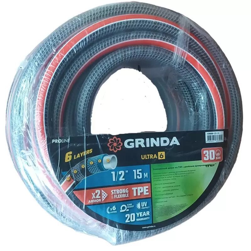 СохранитьШланг поливочный GRINDA ULTRA 6, 1/2 , 15 м, 30 атм, шестислойный, двойное армирование PROLine 429009-1/2-15 интересное: