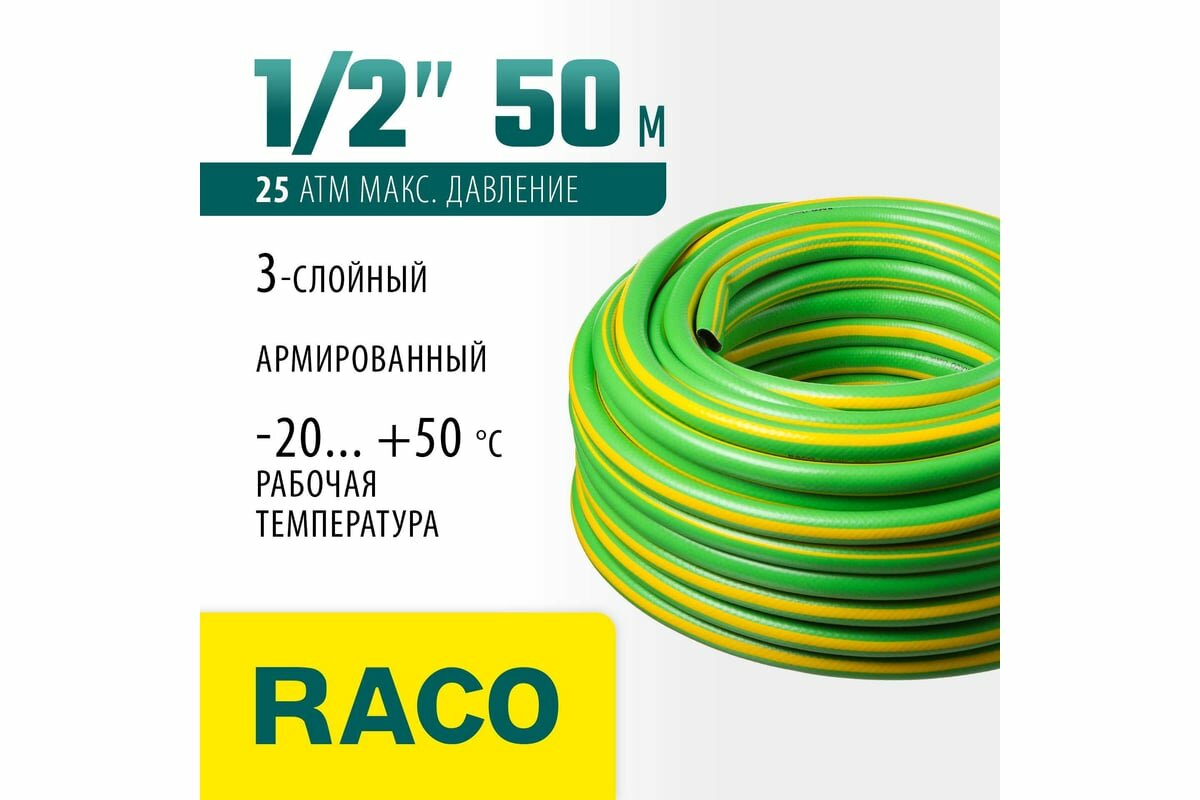 RACO CLASSIC, 1/2, 50 м, 25 атм, трёхслойный, армированный, поливочный шланг (40306-1/2-50) интересное: