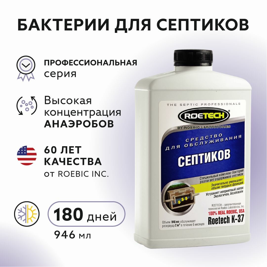 Живые бактерии для септиков Roetech K-37, анаэробная суспензия флакон 946 мл.