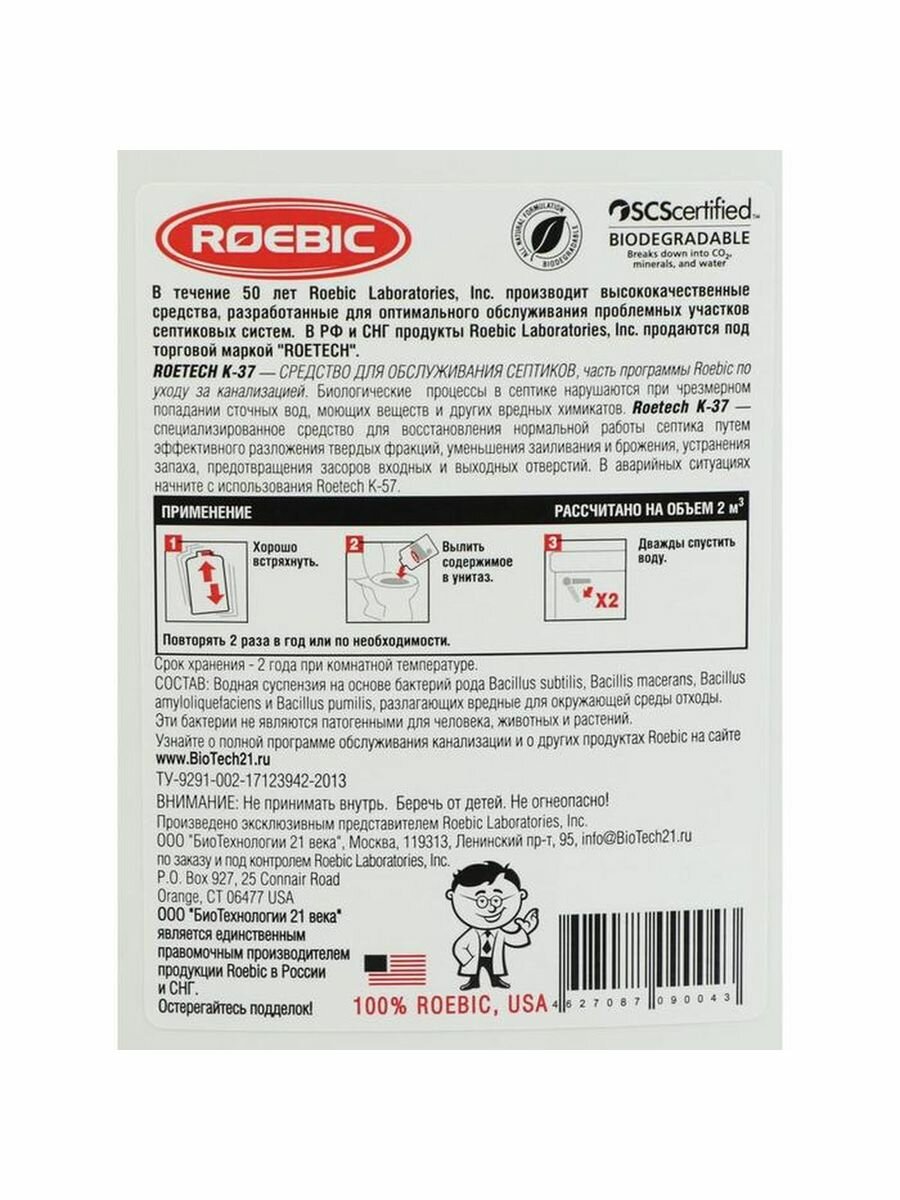 Средство для обслуживания септиков "Roetech" K-37, 946 мл