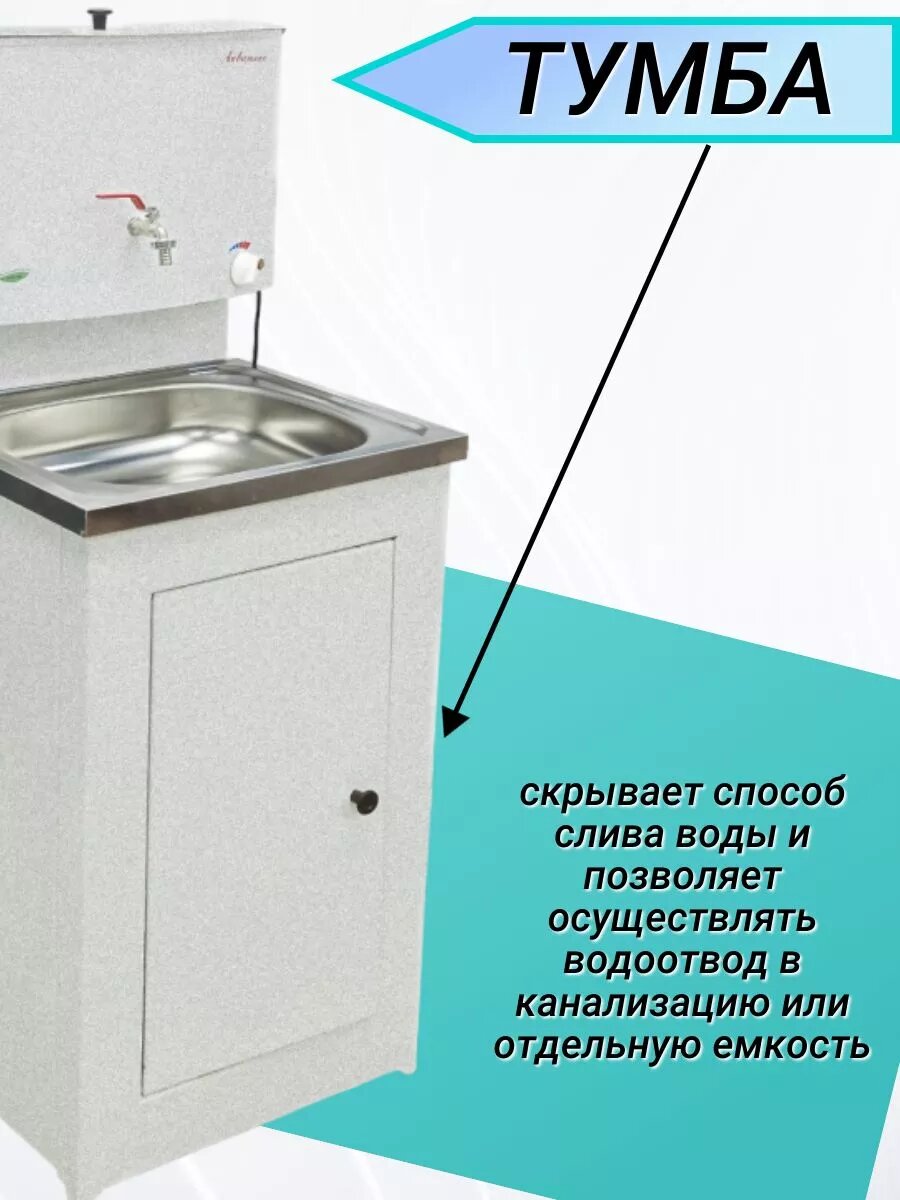 Рукомойник для дачи с тумбой 50х45, с подогревом, 20л, мойка из нержавеющей стали