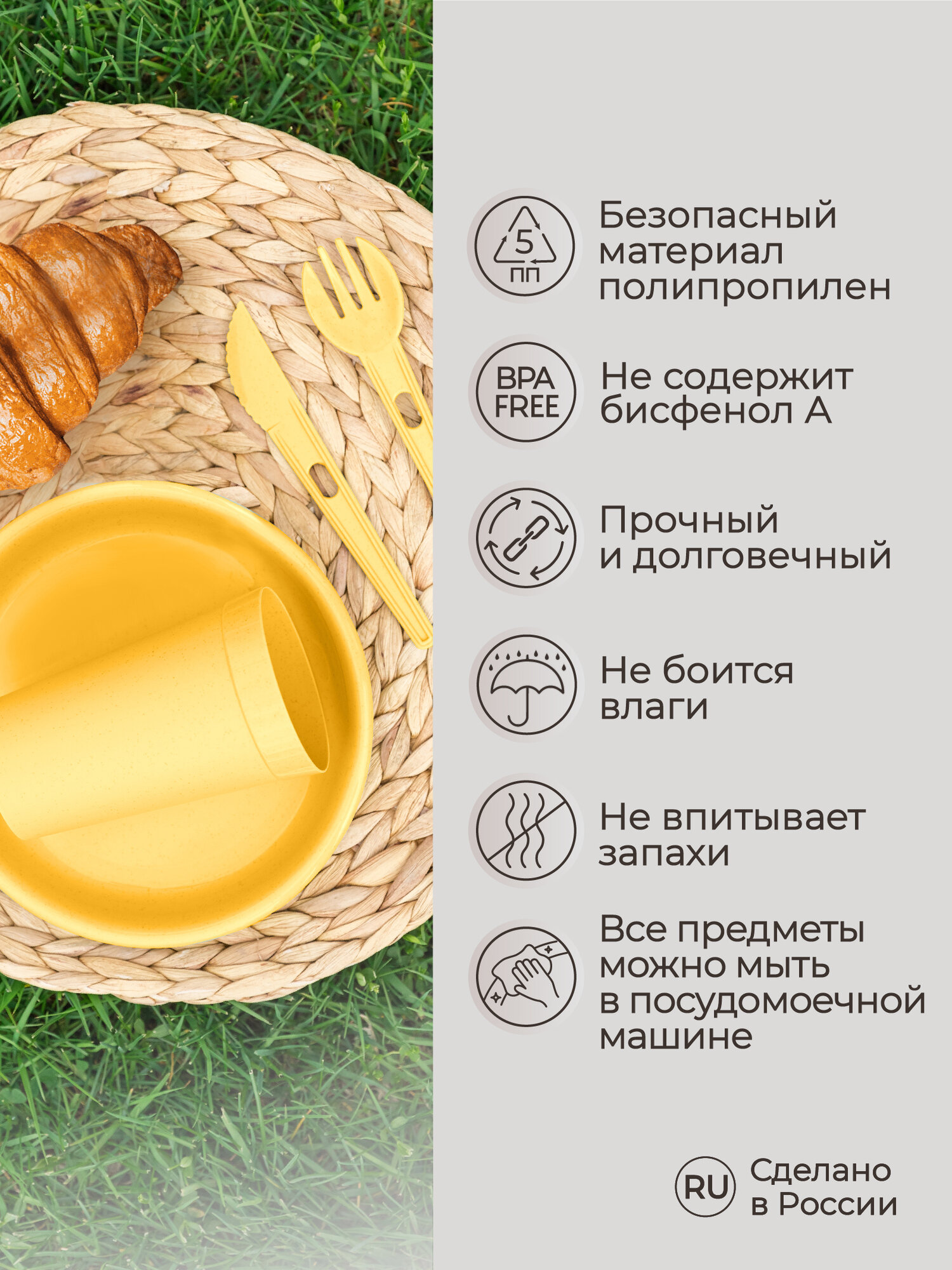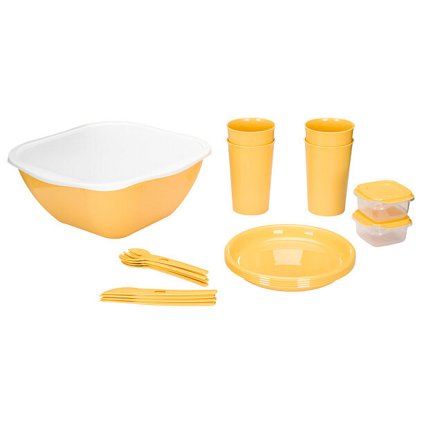 Комплект для пикника, 19 предметов на 4 персоны (Желтый)