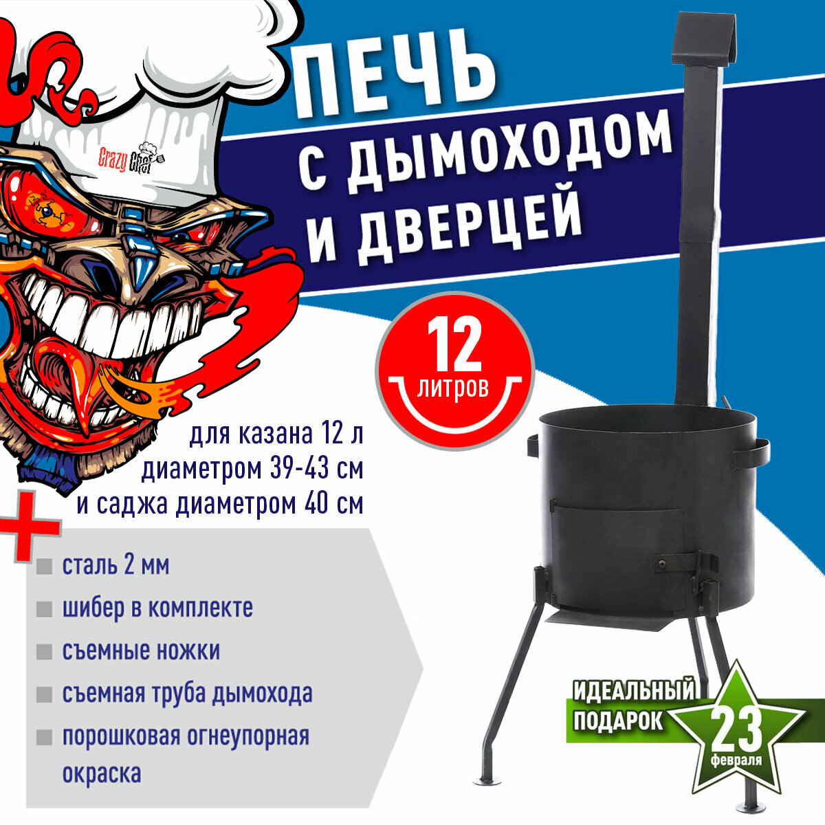 Печь (учаг) для казана, сталь, 12 л, с трубой и дверцей, разборная интересное: