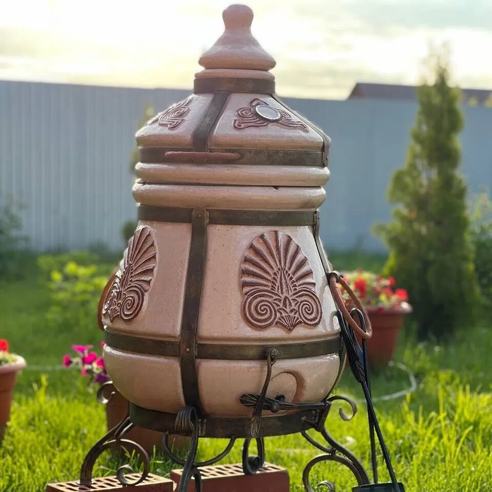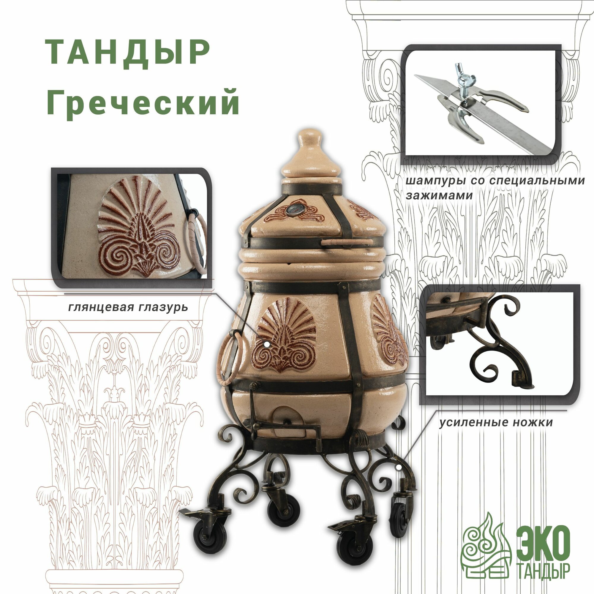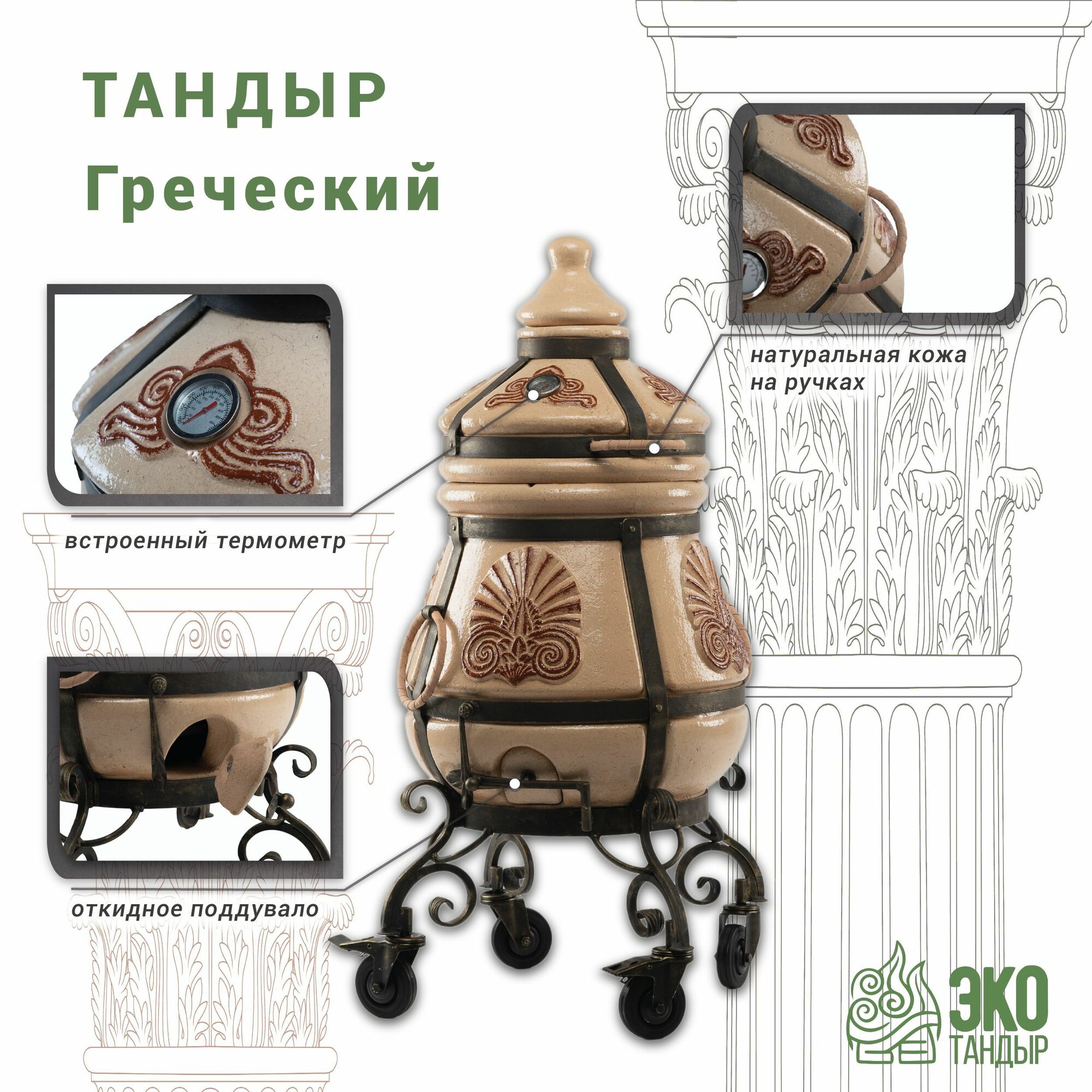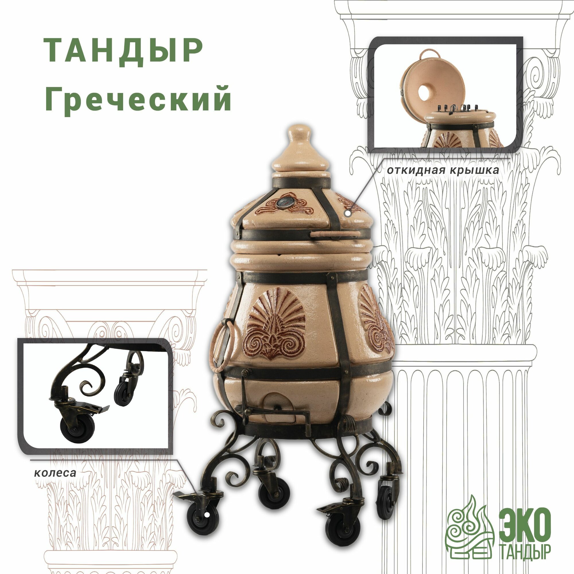 Купить Тандыр ЭкоТандыр Греческий с откидной крышкой на колесах, слоновая кость / сборник рецептов, чехол в подарок