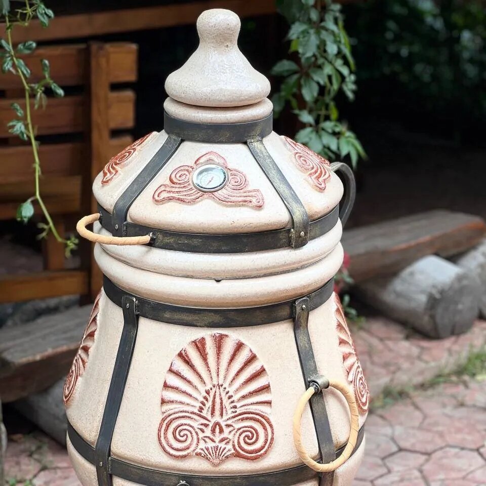Тандыр ЭкоТандыр Греческий с откидной крышкой, слоновая кость / средний тандыр для семьи