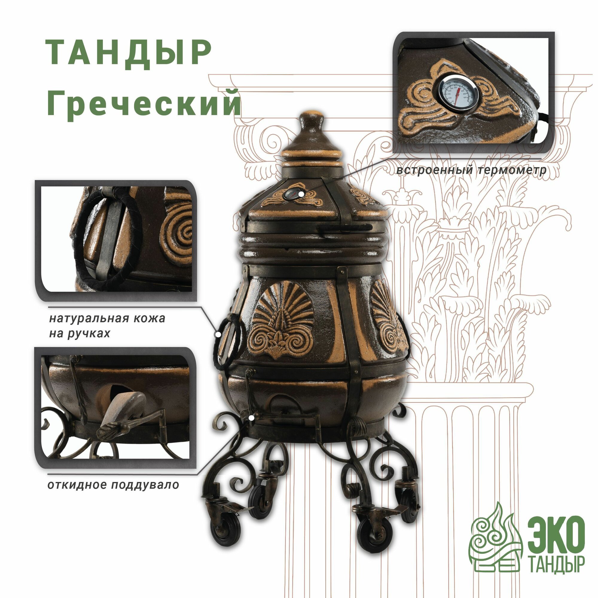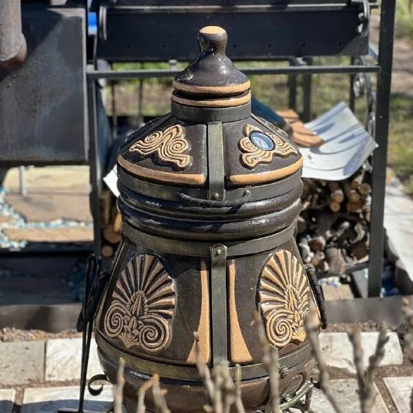 Тандыр ЭкоТандыр Греческий с откидной крышкой, цвет черная патина/ средний красивый тандыр от производителя