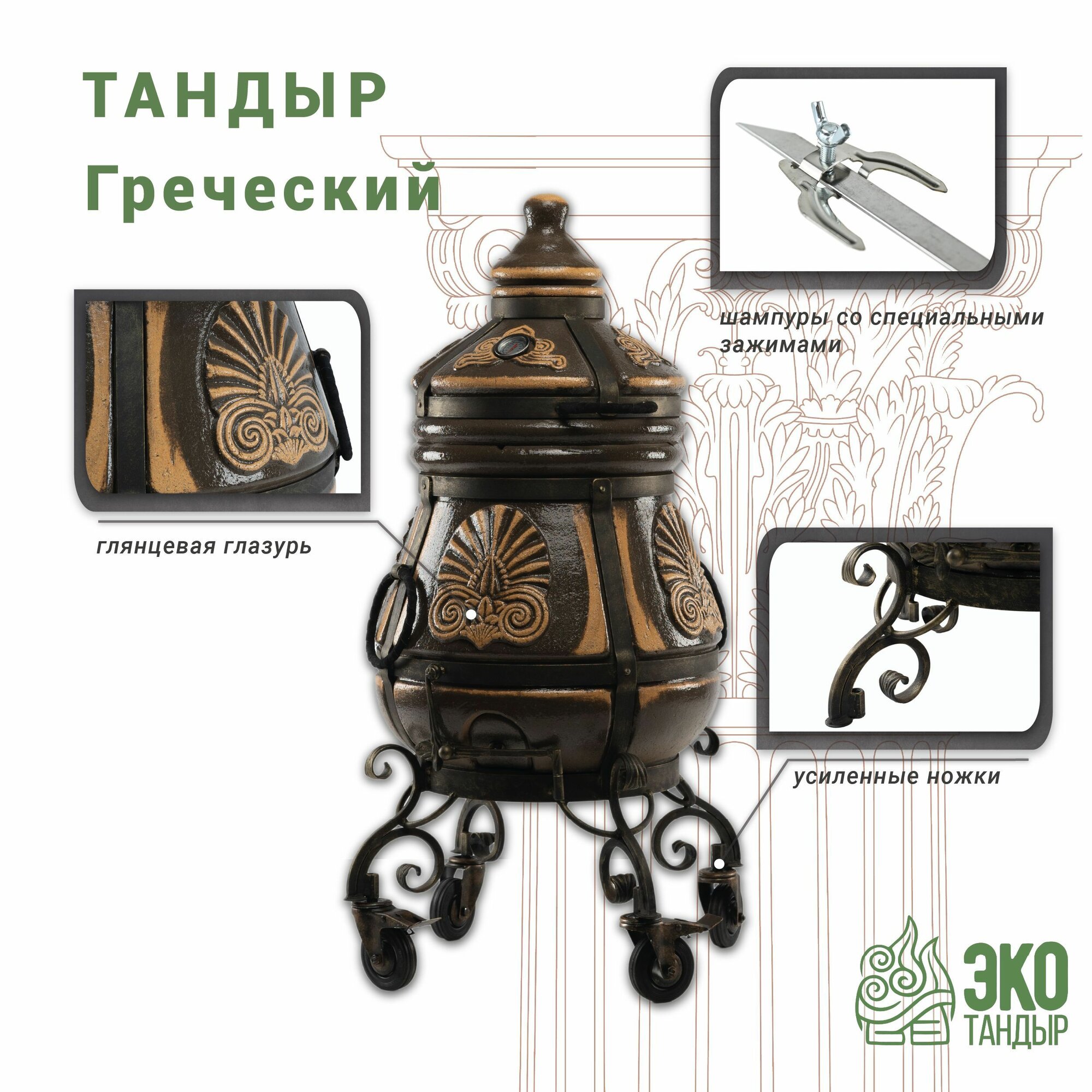 Тандыр ЭкоТандыр Греческий с откидной крышкой, цвет малахит / тандыр с глазурью и с откидной крышкой
