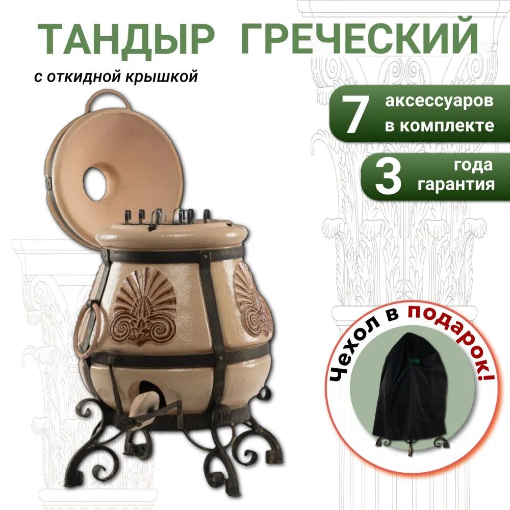 Тандыр ЭкоТандыр Греческий с откидной крышкой на колесах, слоновая кость / сборник рецептов, чехол в подарок